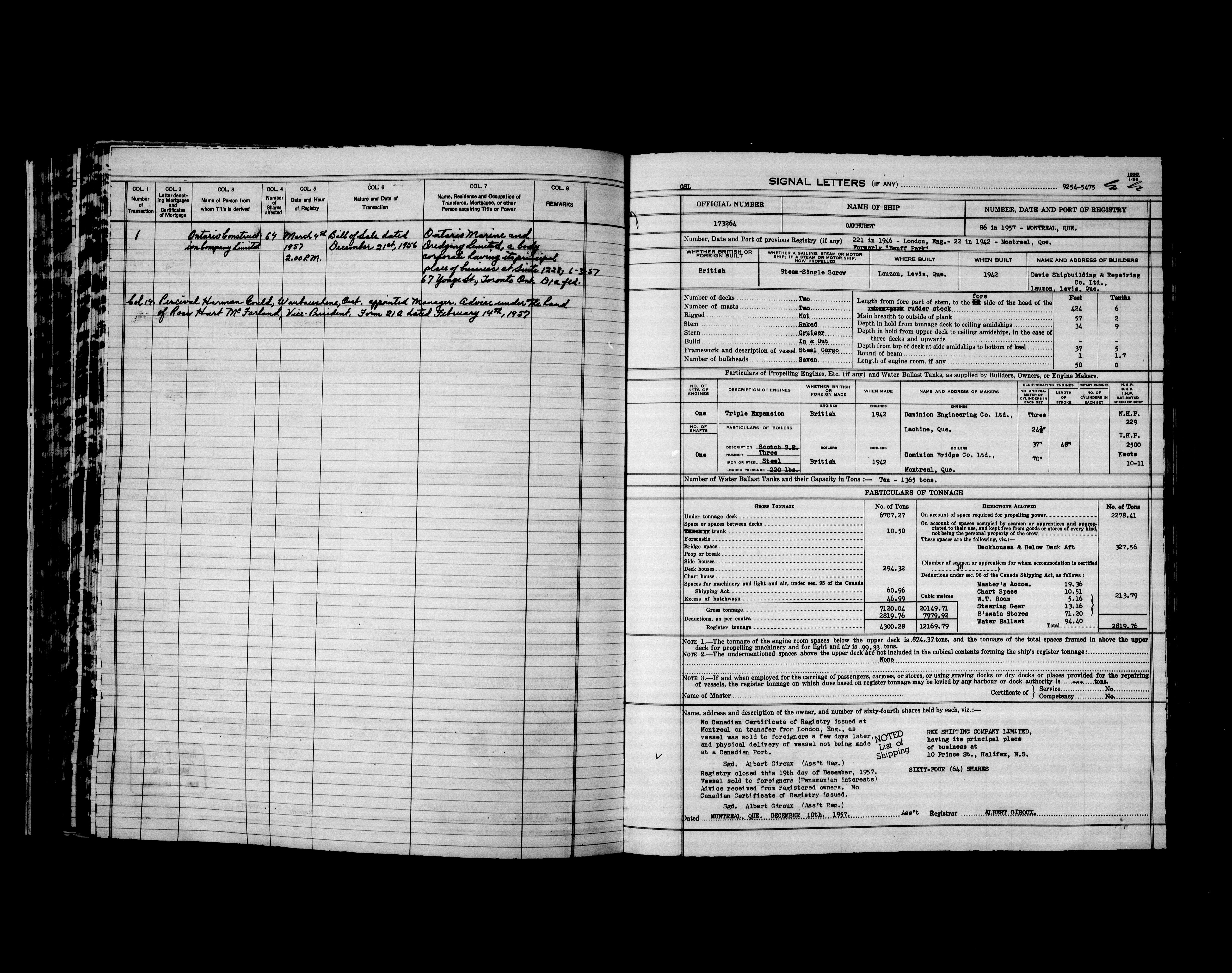 Department of Transport : Registers and ledgers cards of ships closed-out (1904-1983) - 11914