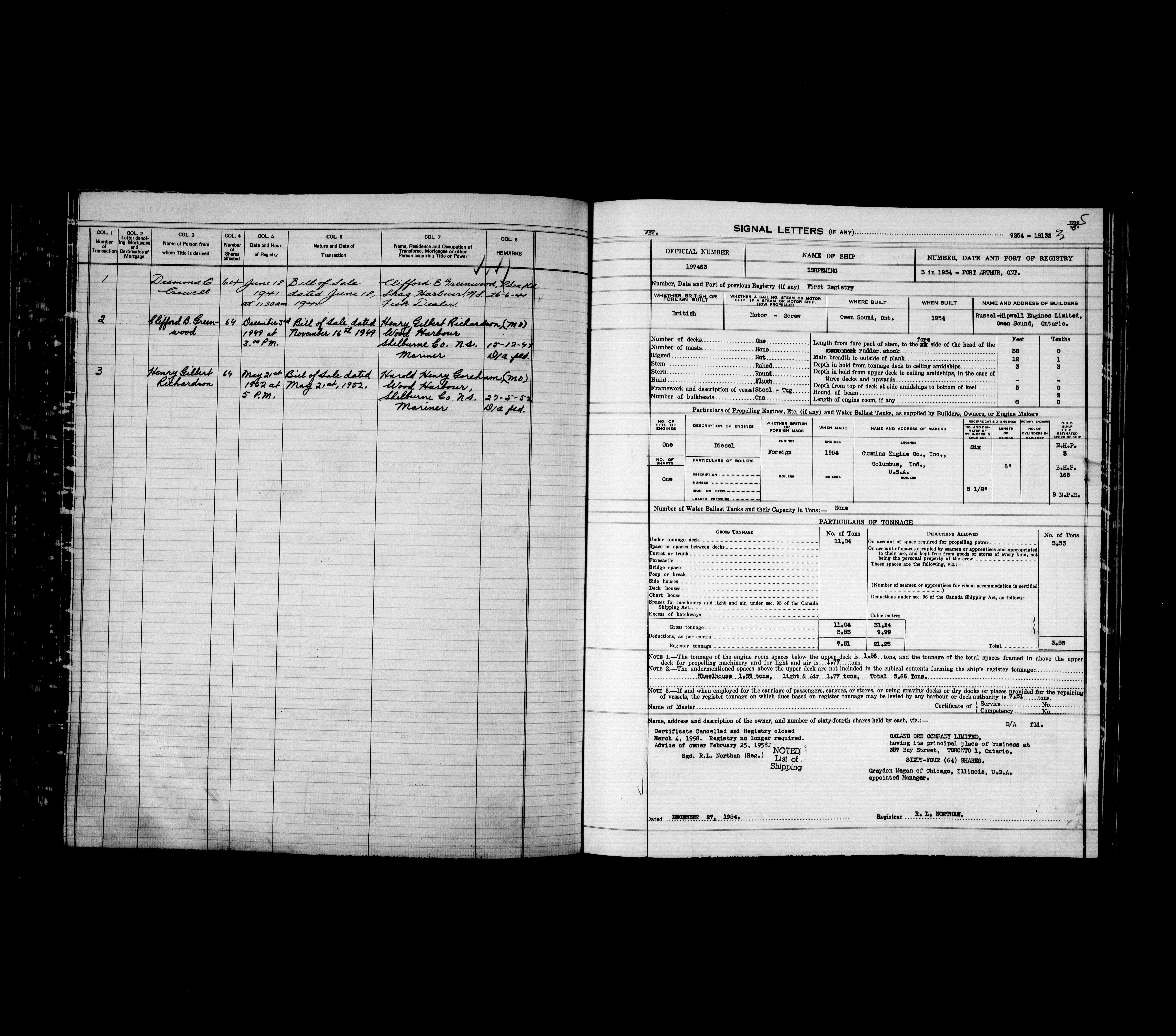 Department of Transport : Registers and ledgers cards of ships closed-out (1904-1983) - 11915