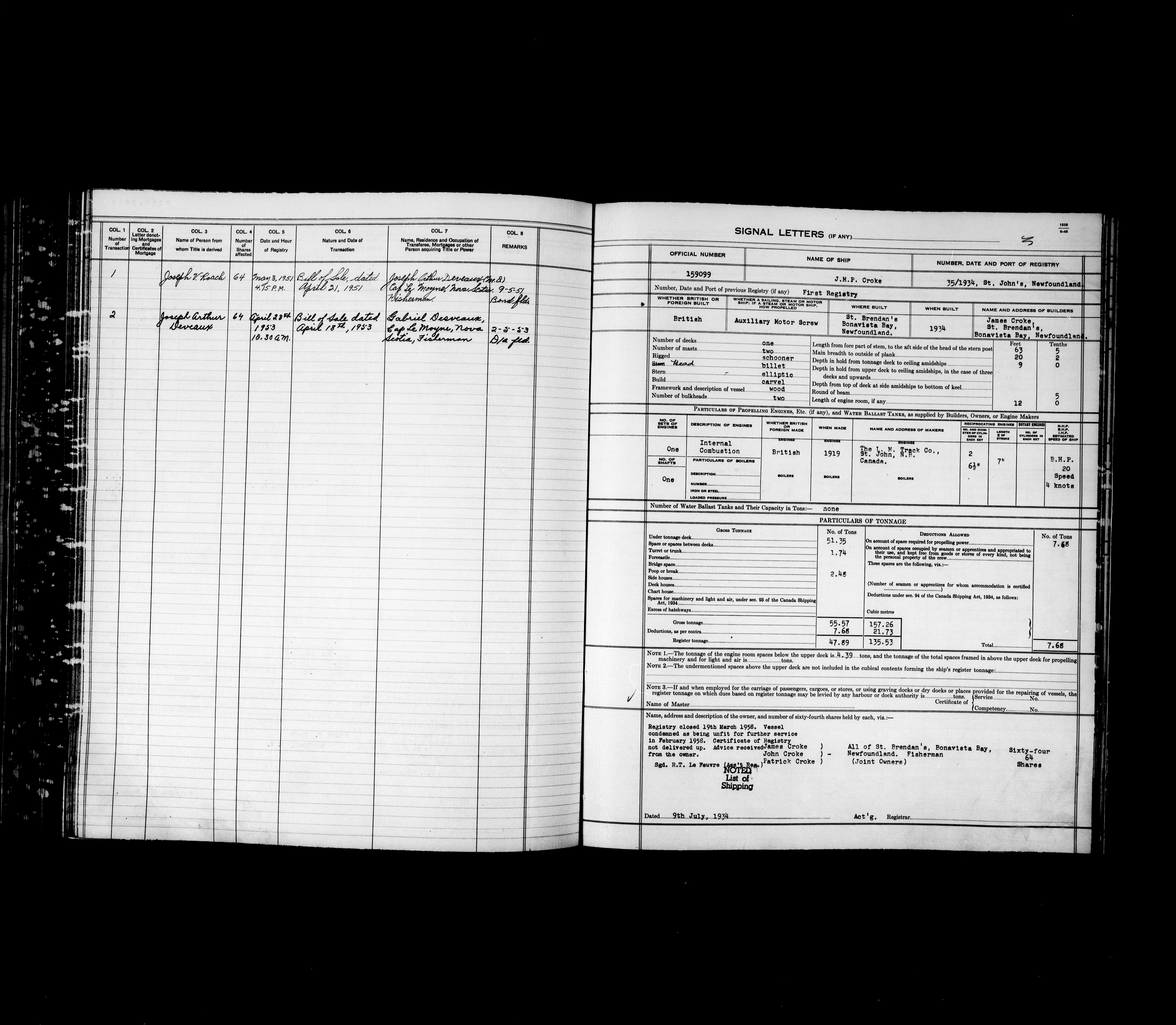 Department of Transport : Registers and ledgers cards of ships closed-out (1904-1983) - 11915