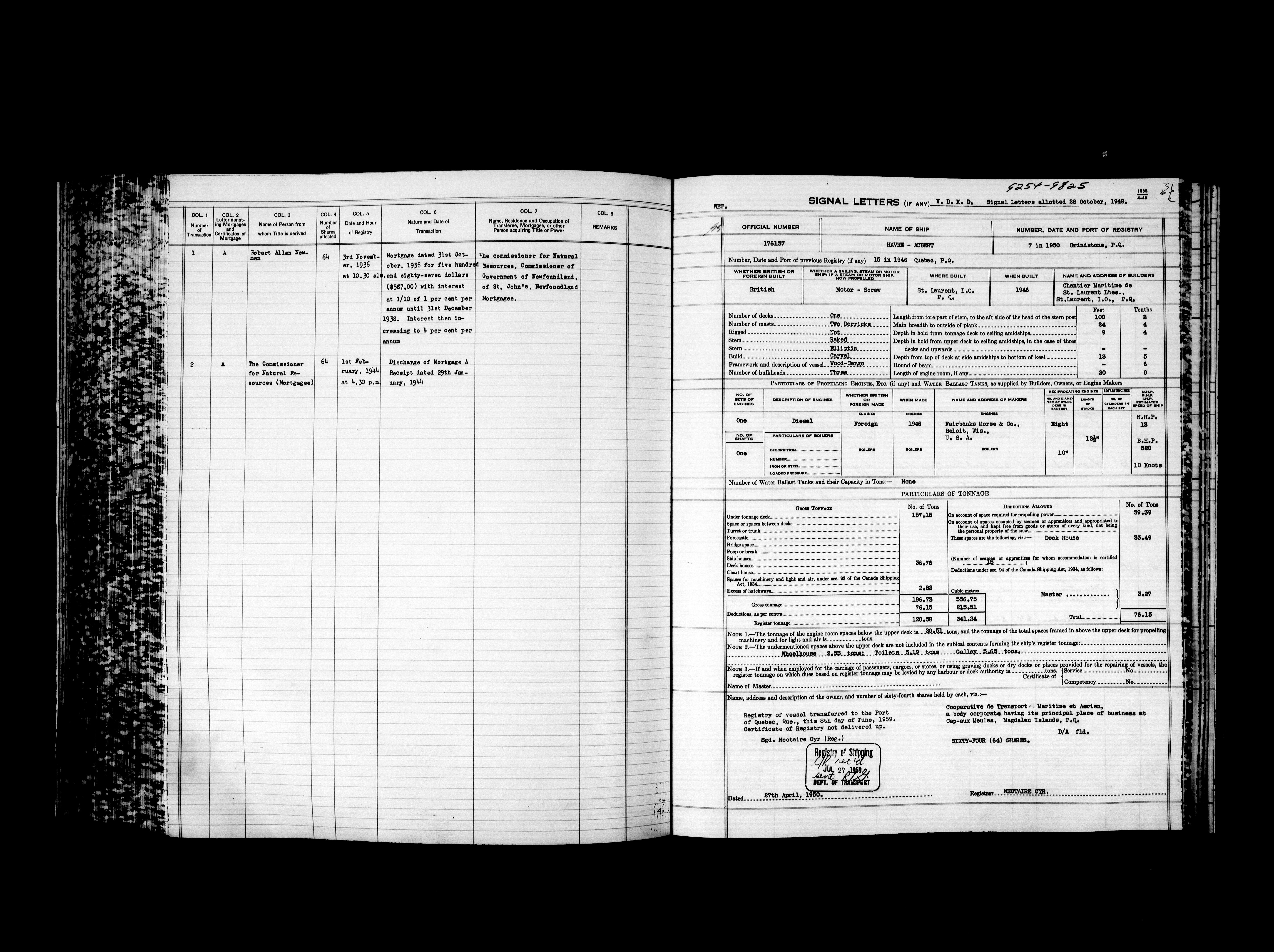 Department of Transport : Registers and ledgers cards of ships closed-out (1904-1983) - 11916