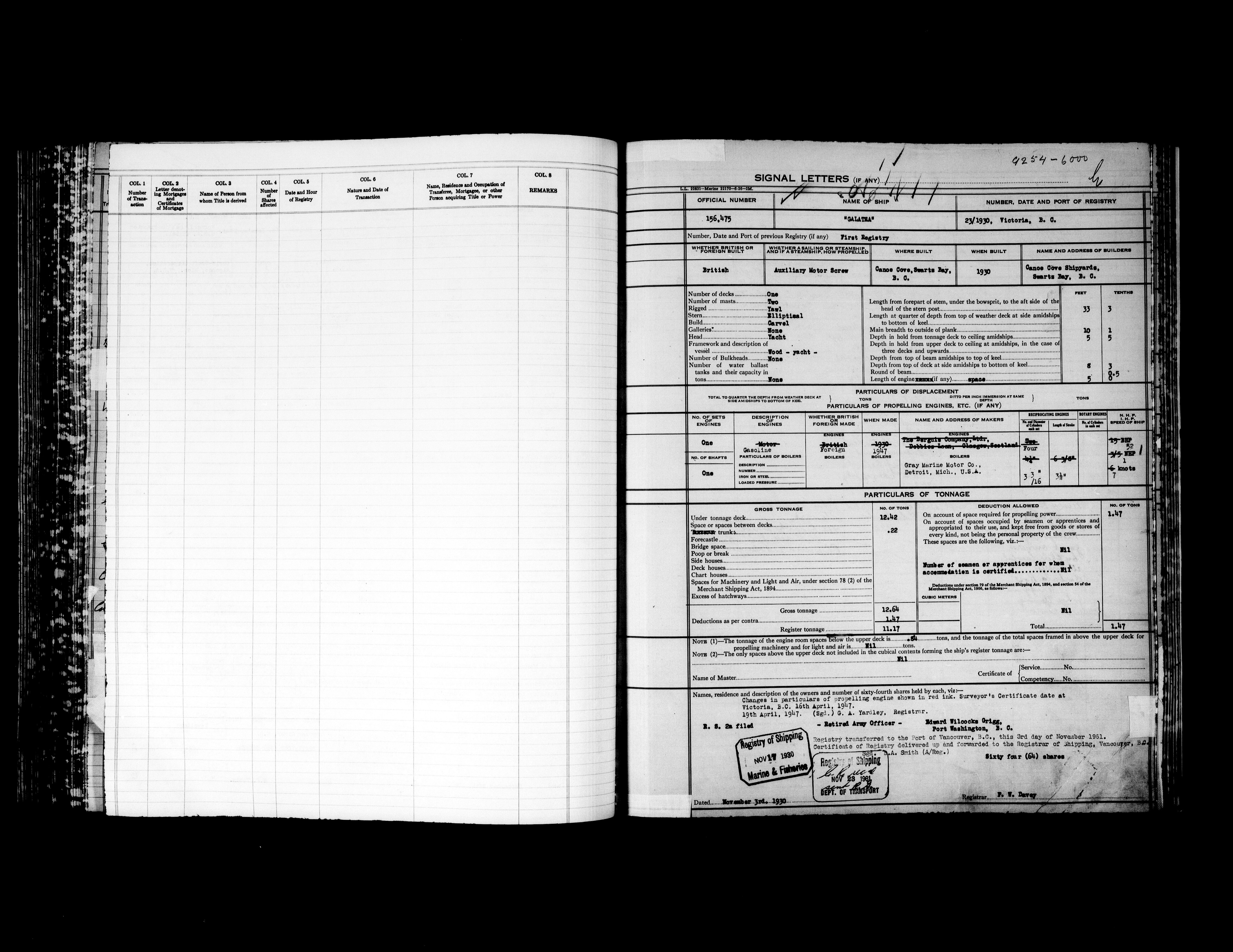 Department of Transport : Registers and ledgers cards of ships closed-out (1904-1983) - 11918