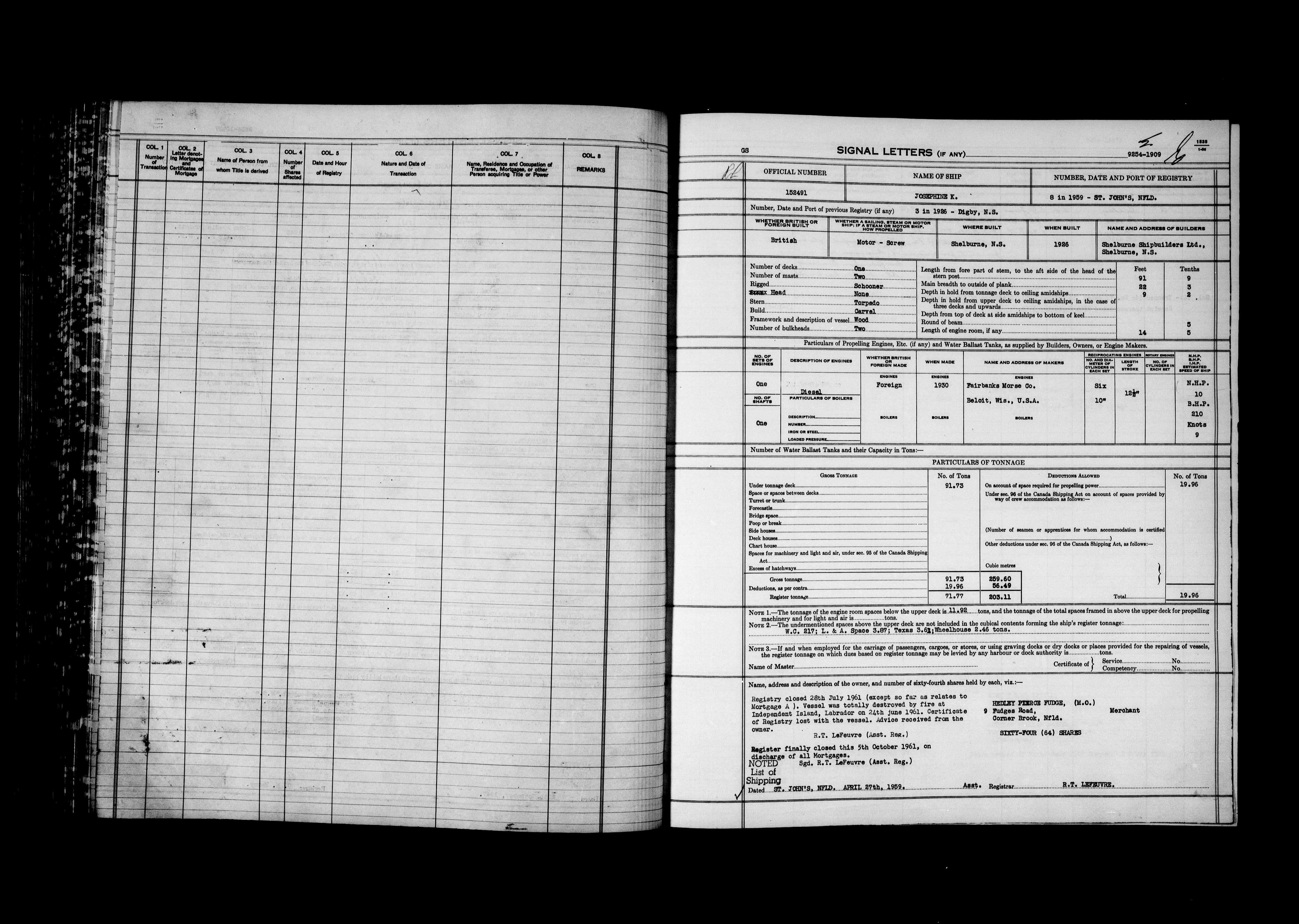Department of Transport : Registers and ledgers cards of ships closed-out (1904-1983) - 11919