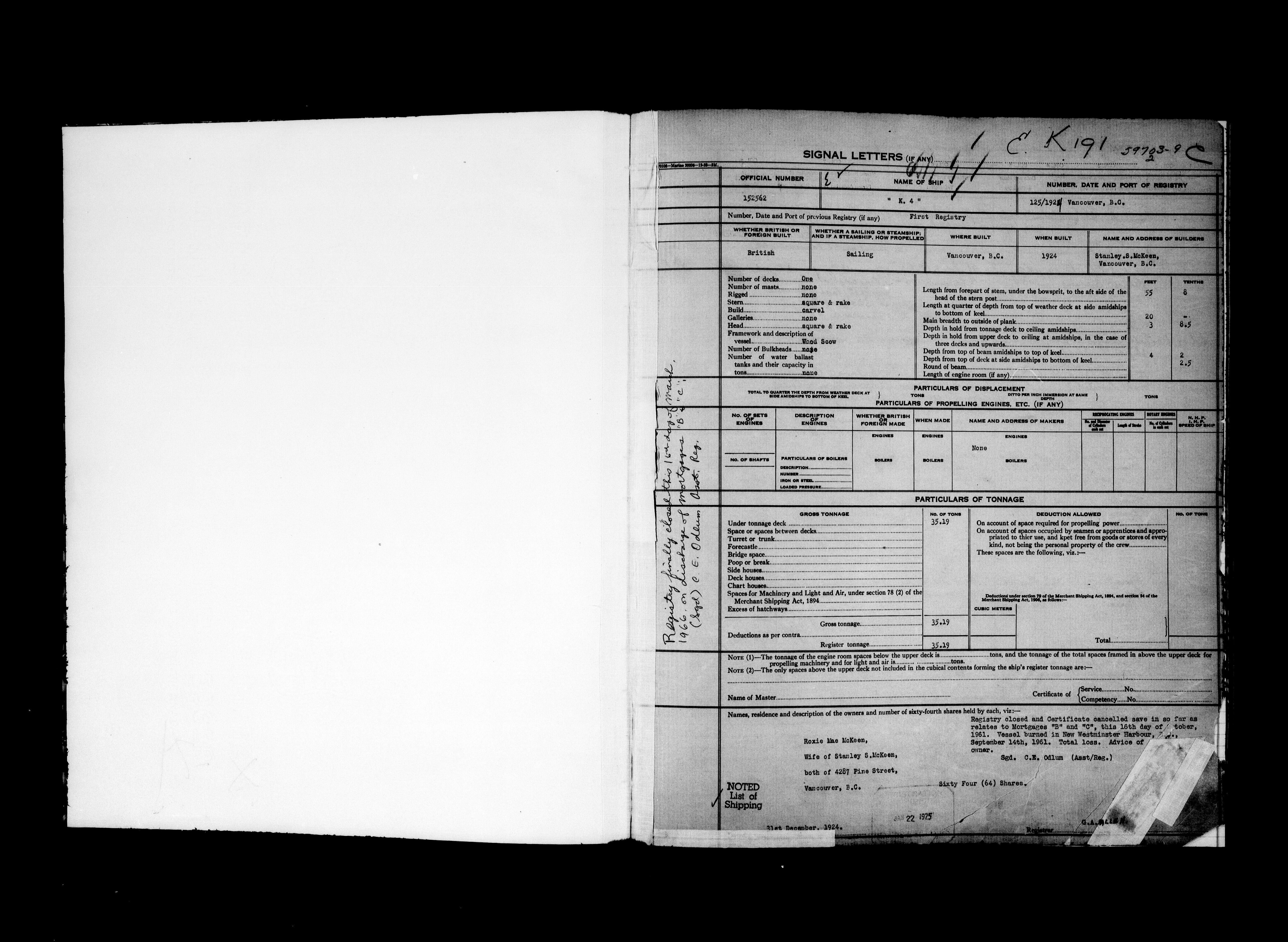 Department of Transport : Registers and ledgers cards of ships closed-out (1904-1983) - 11919