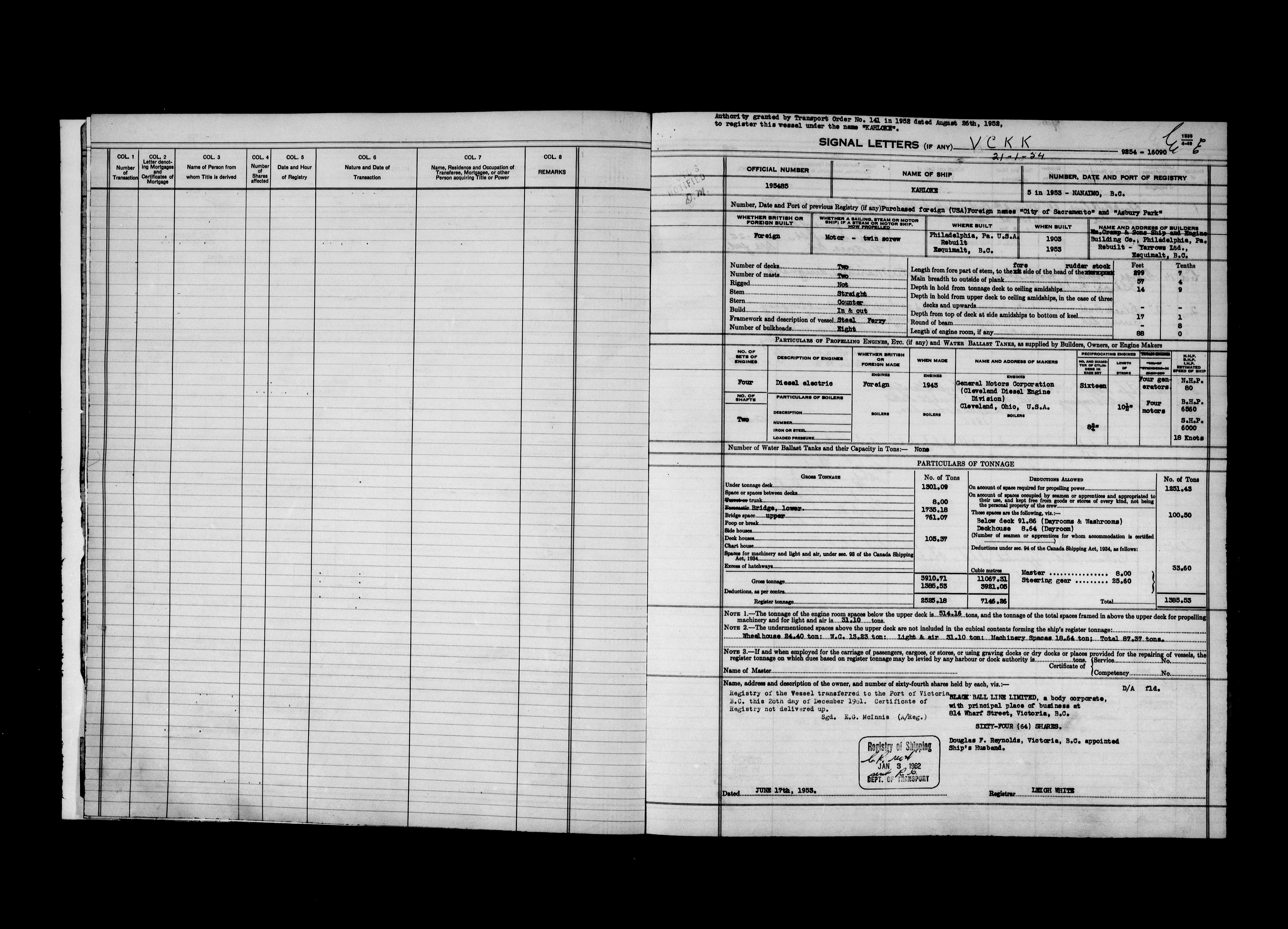 Department of Transport : Registers and ledgers cards of ships closed-out (1904-1983) - 11919