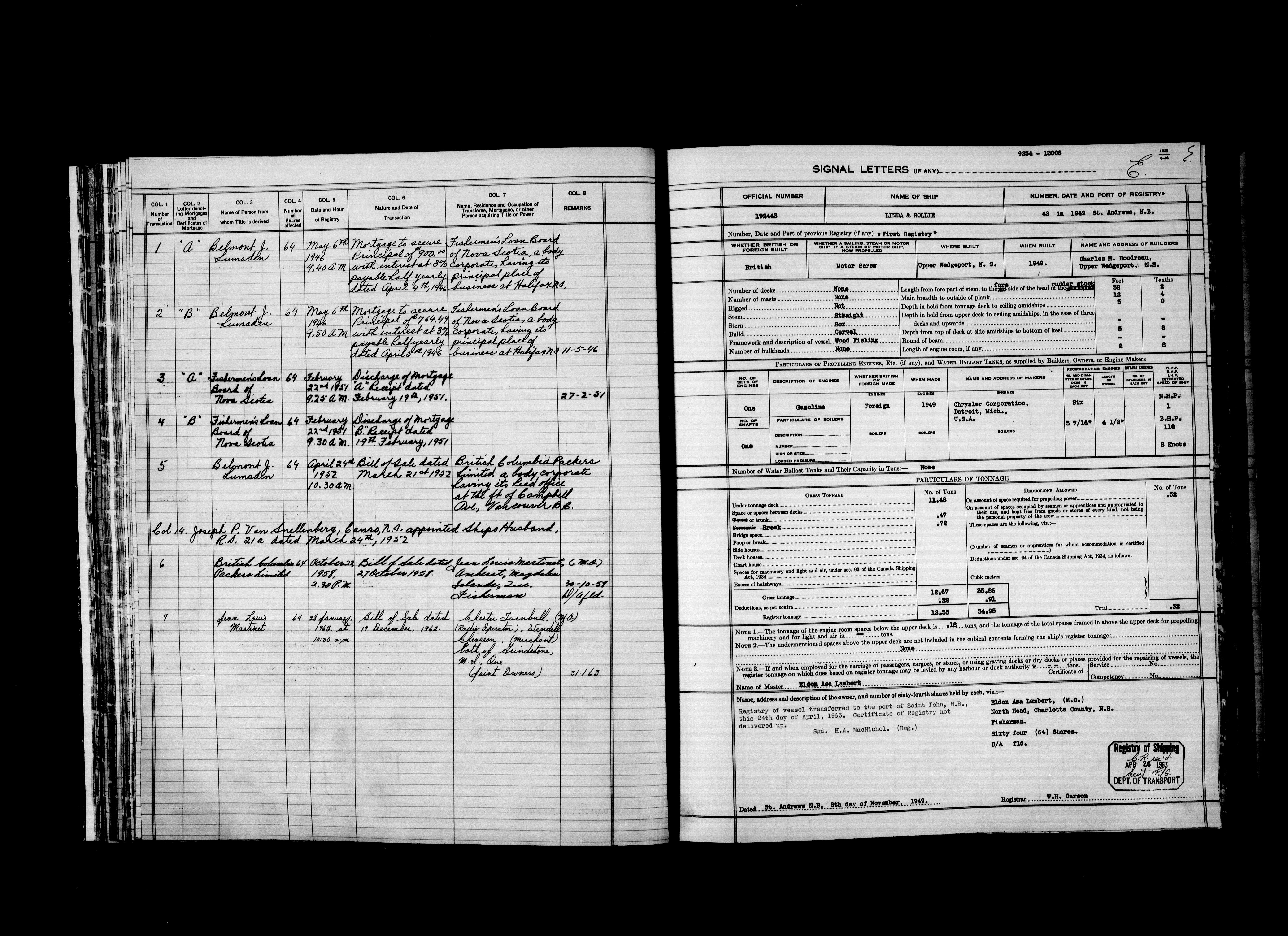 Department of Transport : Registers and ledgers cards of ships closed-out (1904-1983) - 11921