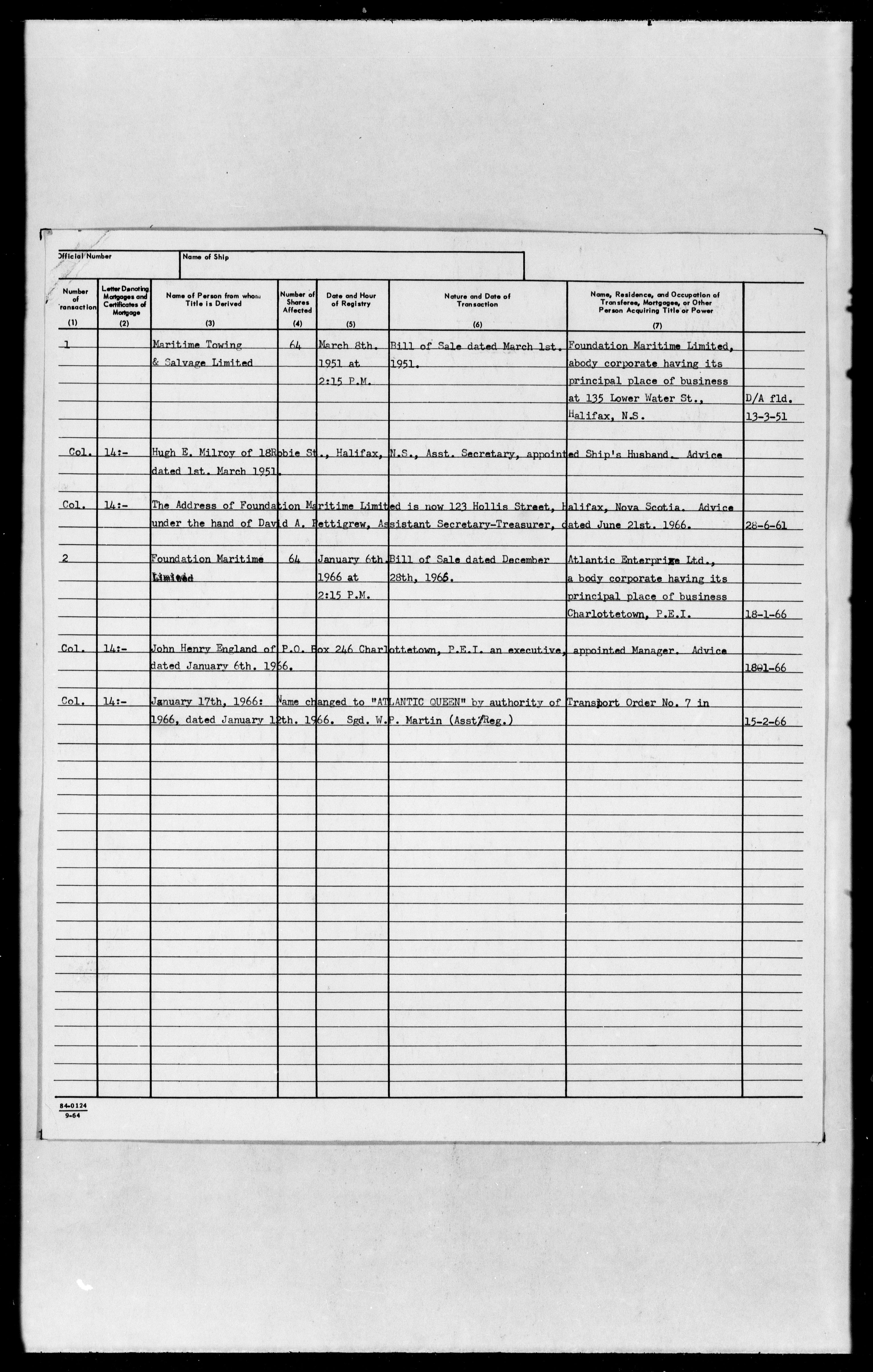 Department of Transport : Registers and ledgers cards of ships closed-out (1904-1983) - 11924