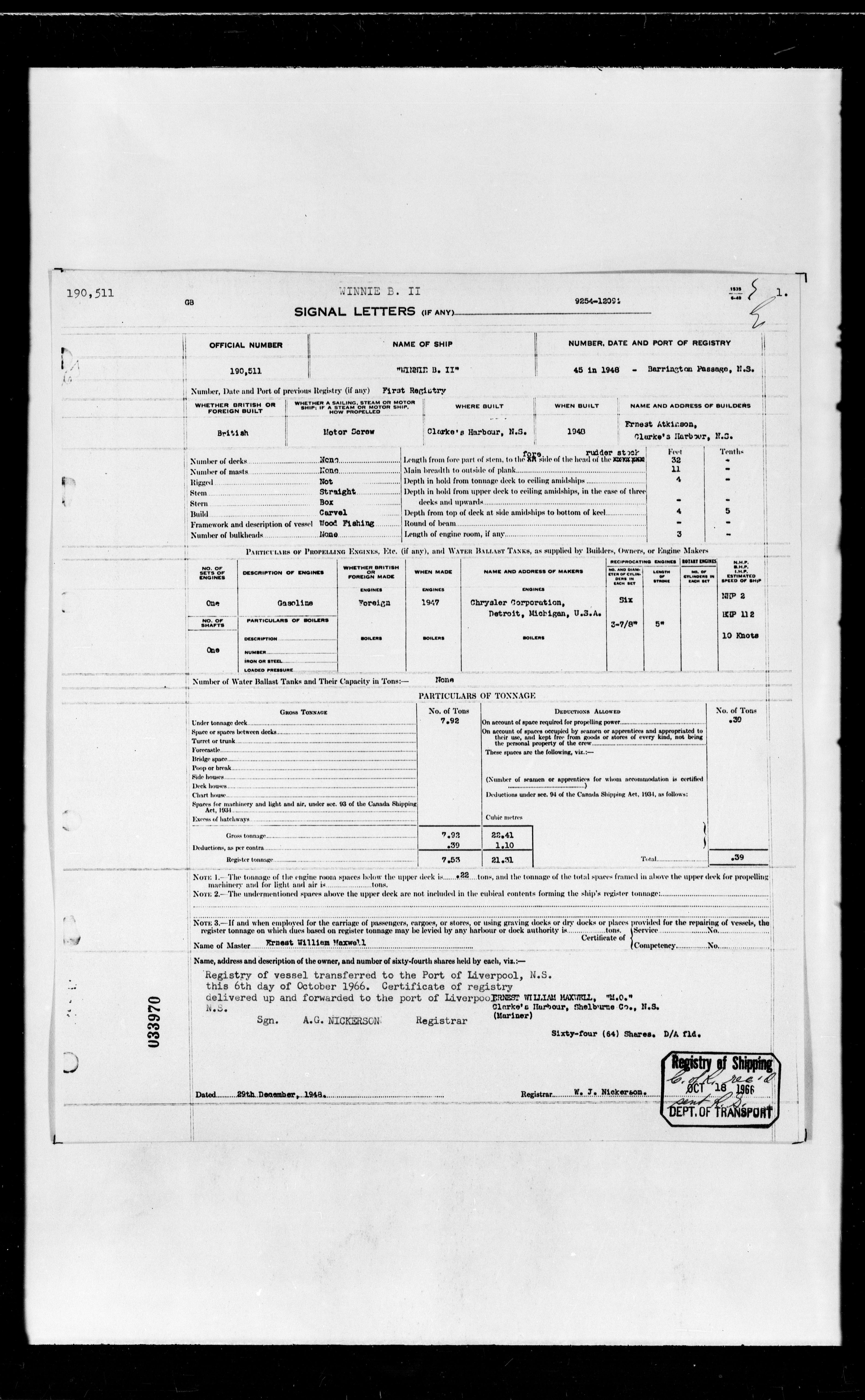 Department of Transport : Registers and ledgers cards of ships closed-out (1904-1983) - 11925