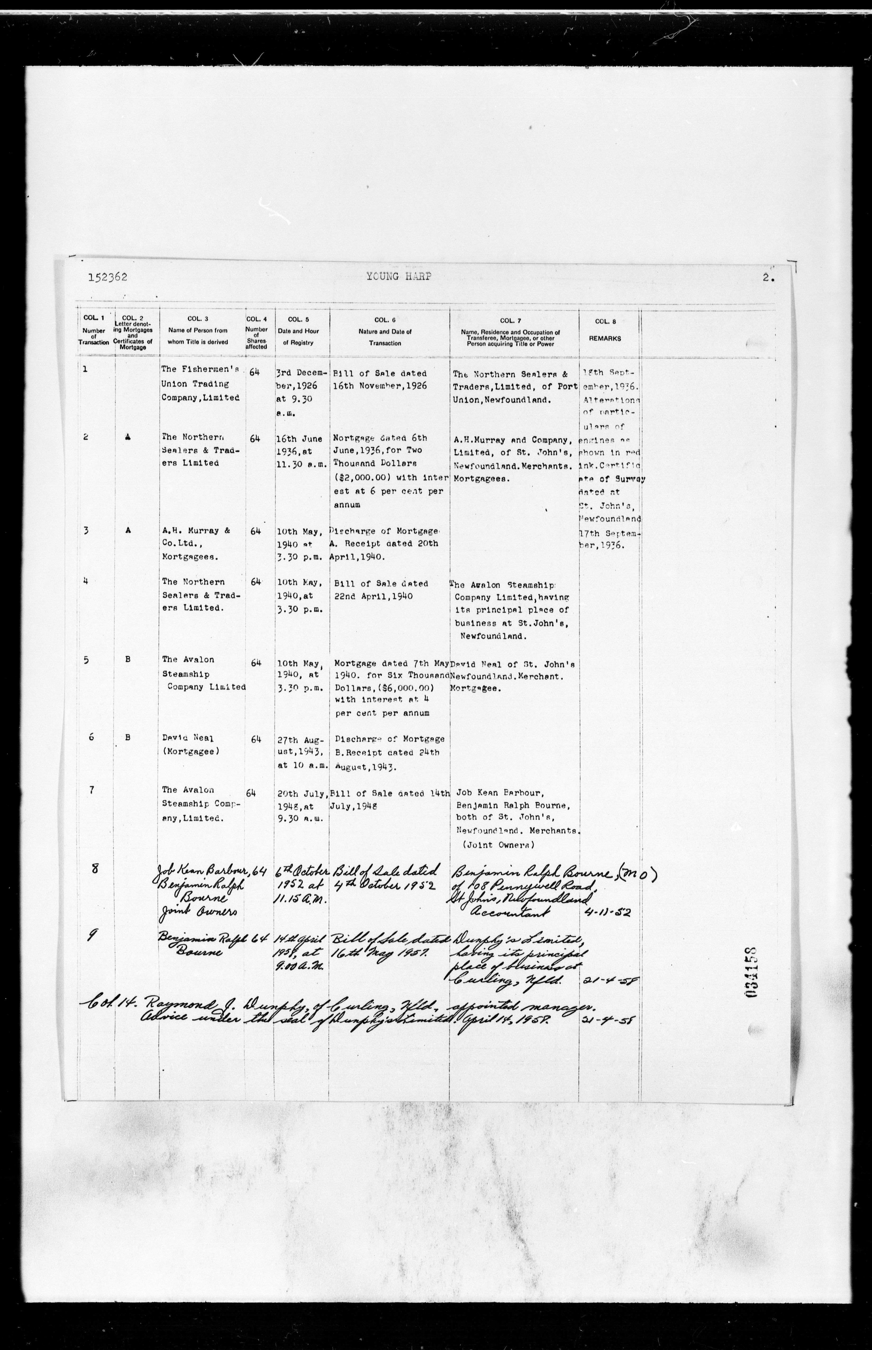 Department of Transport : Registers and ledgers cards of ships closed-out (1904-1983) - 11928