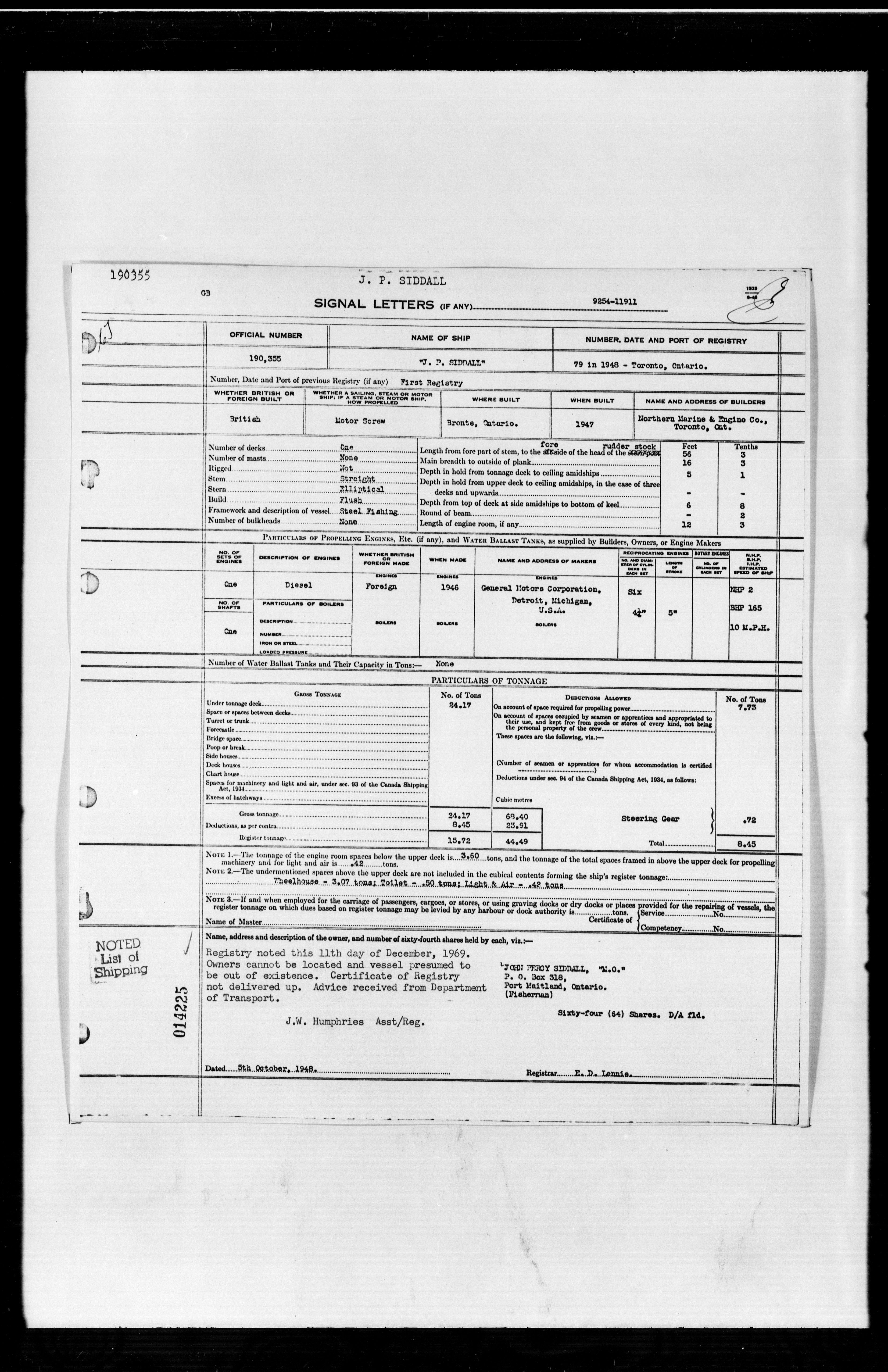 Department of Transport : Registers and ledgers cards of ships closed-out (1904-1983) - 11928