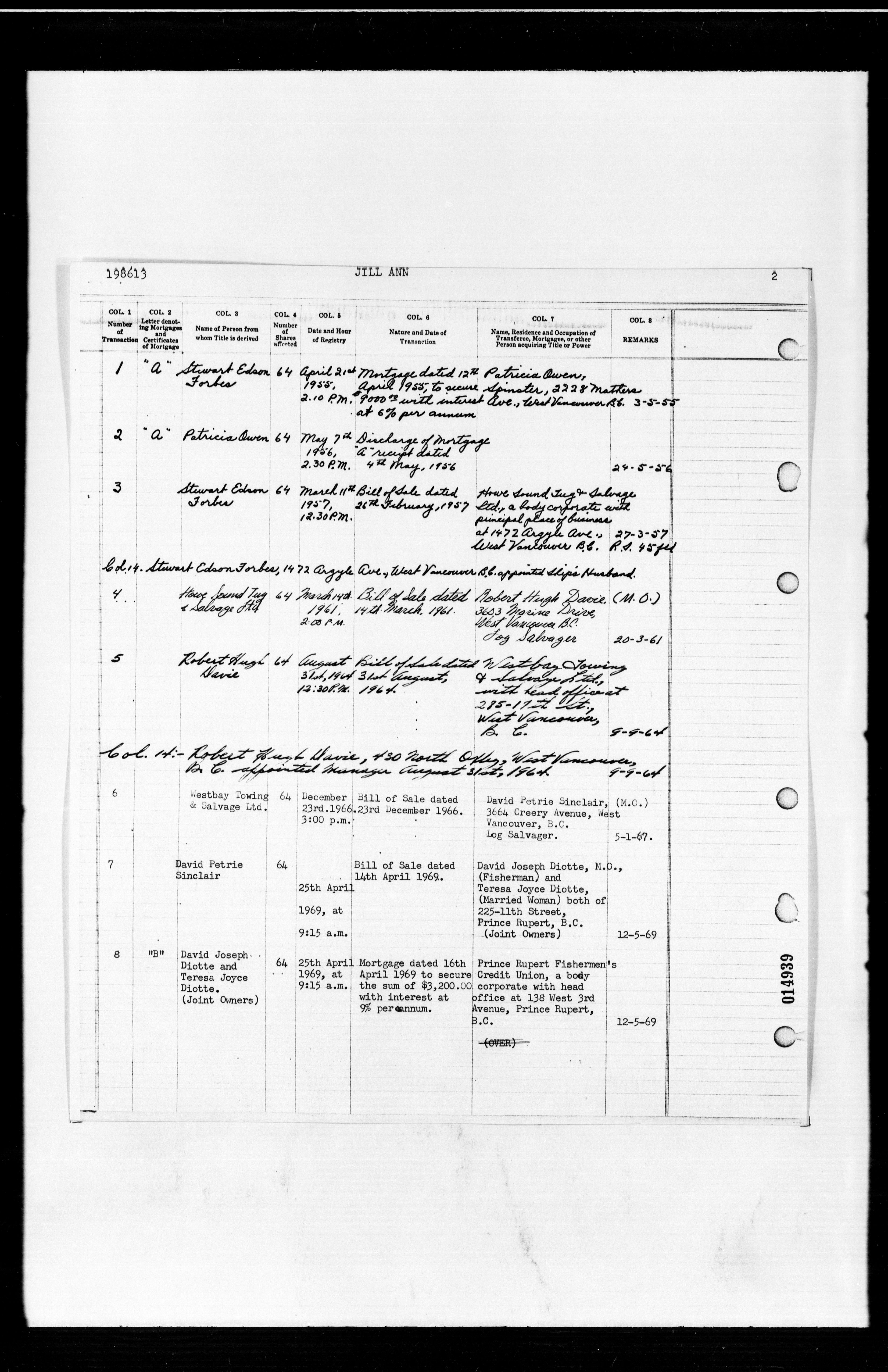 Department of Transport : Registers and ledgers cards of ships closed-out (1904-1983) - 11928