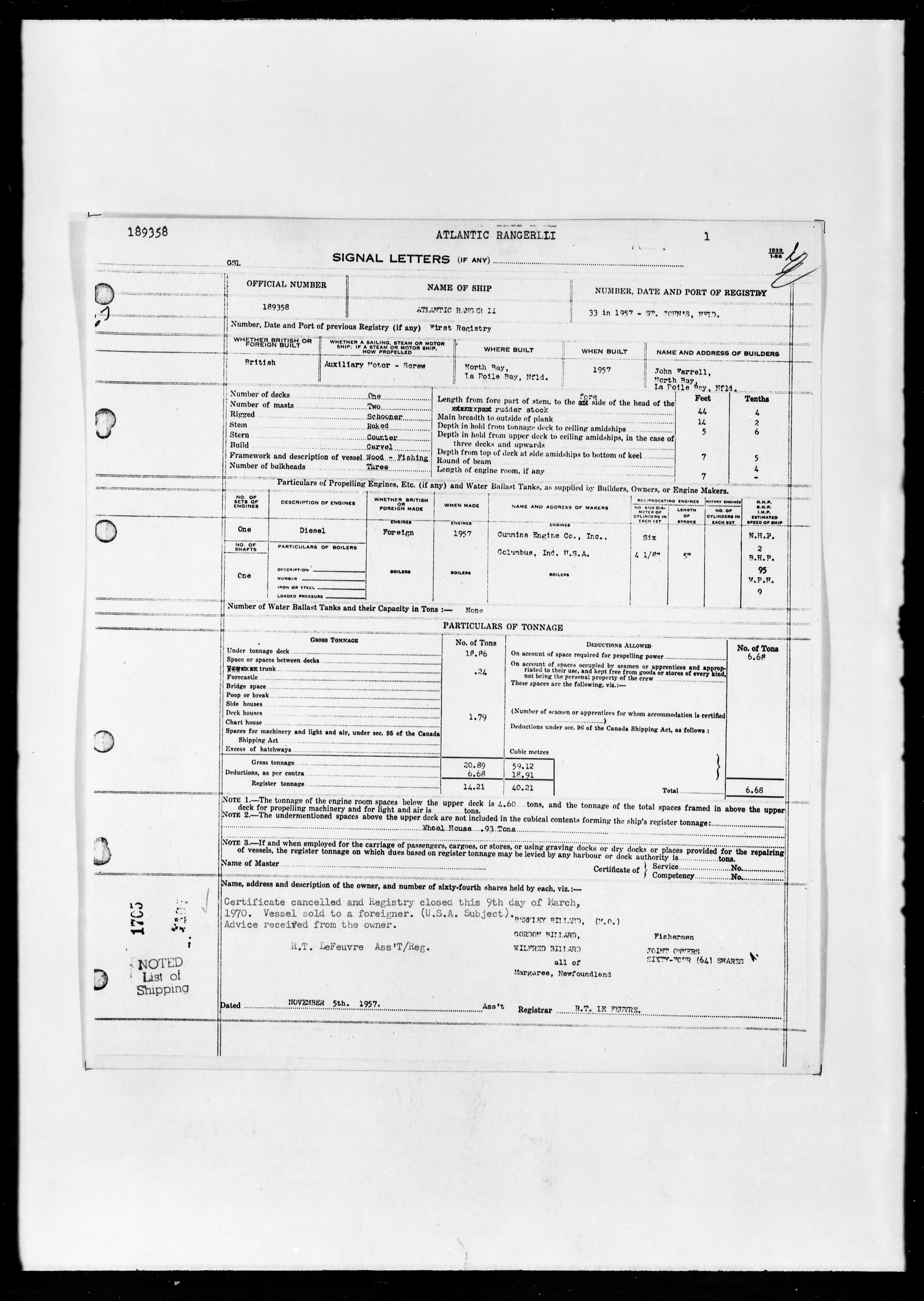 Department of Transport : Registers and ledgers cards of ships closed-out (1904-1983) - 11929