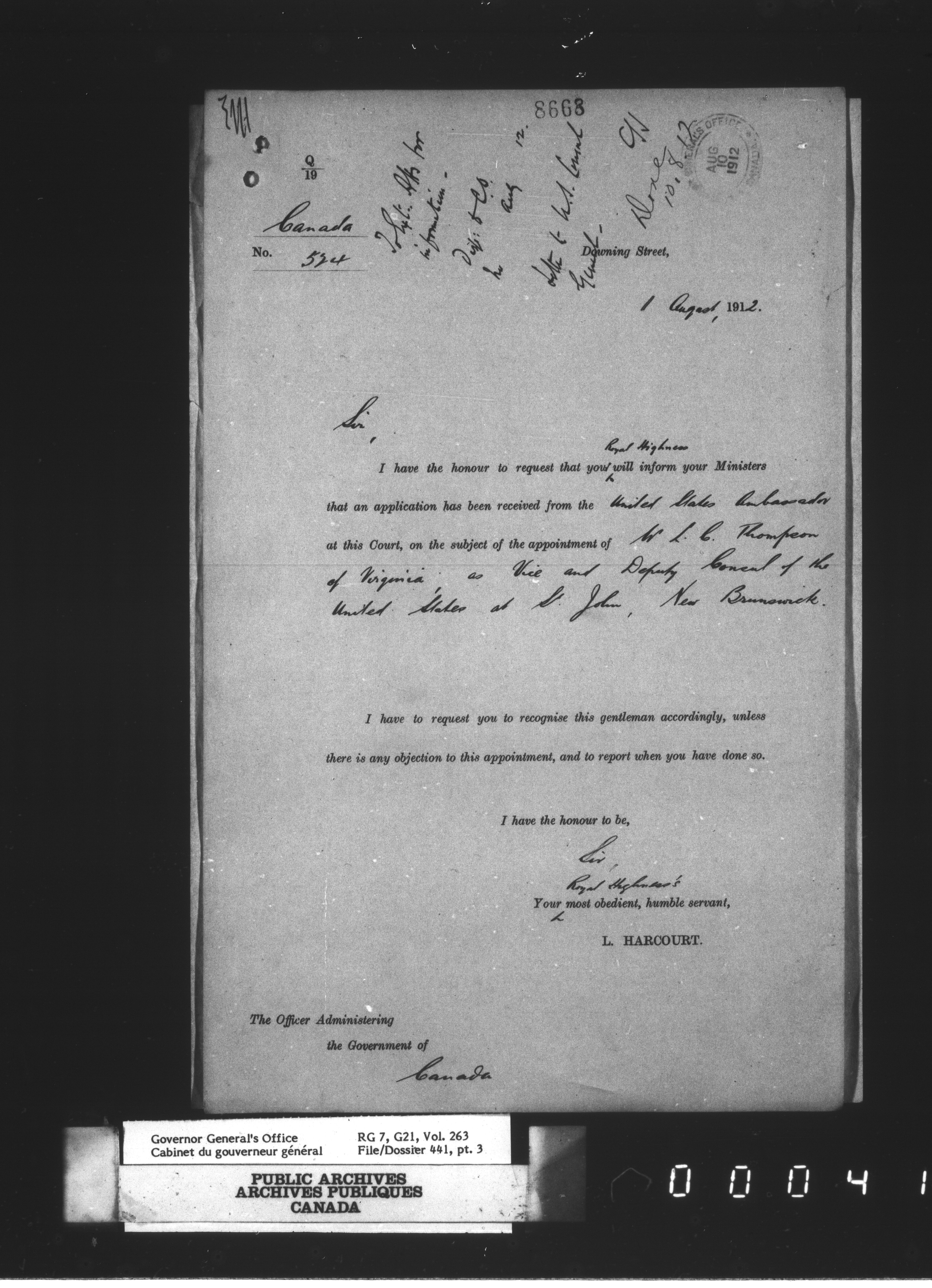 Vol. 263, file 441, pt. 3-267, file 441, pt. 8