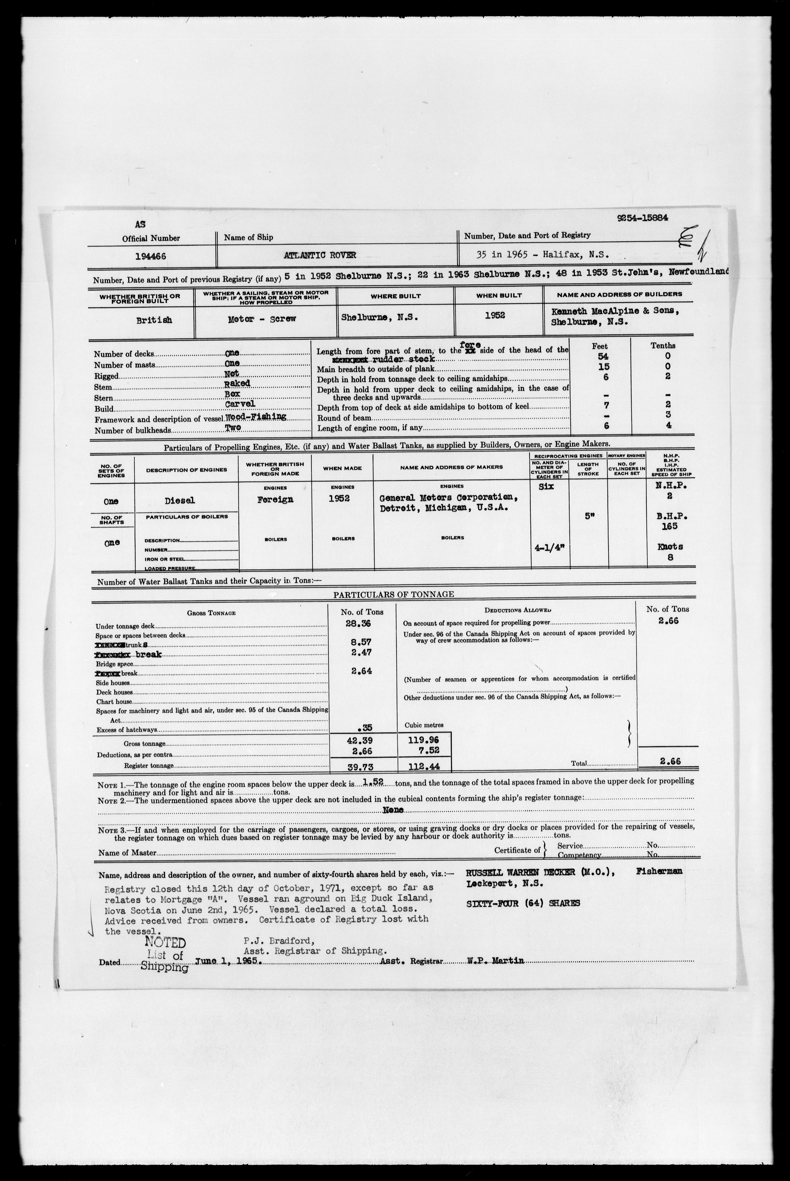 Department of Transport : Registers and ledgers cards of ships closed-out (1904-1983) - 11930