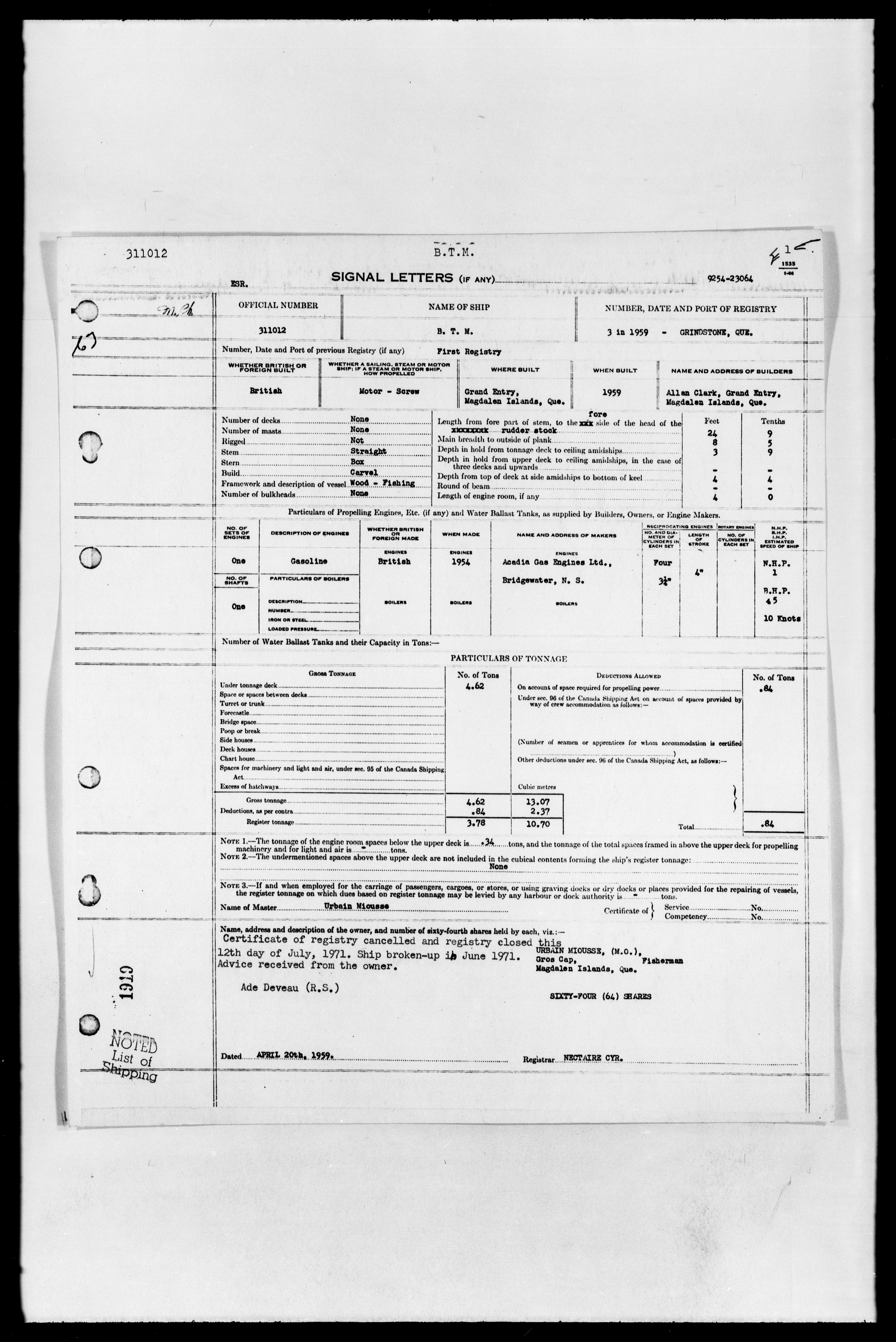 Department of Transport : Registers and ledgers cards of ships closed-out (1904-1983) - 11930