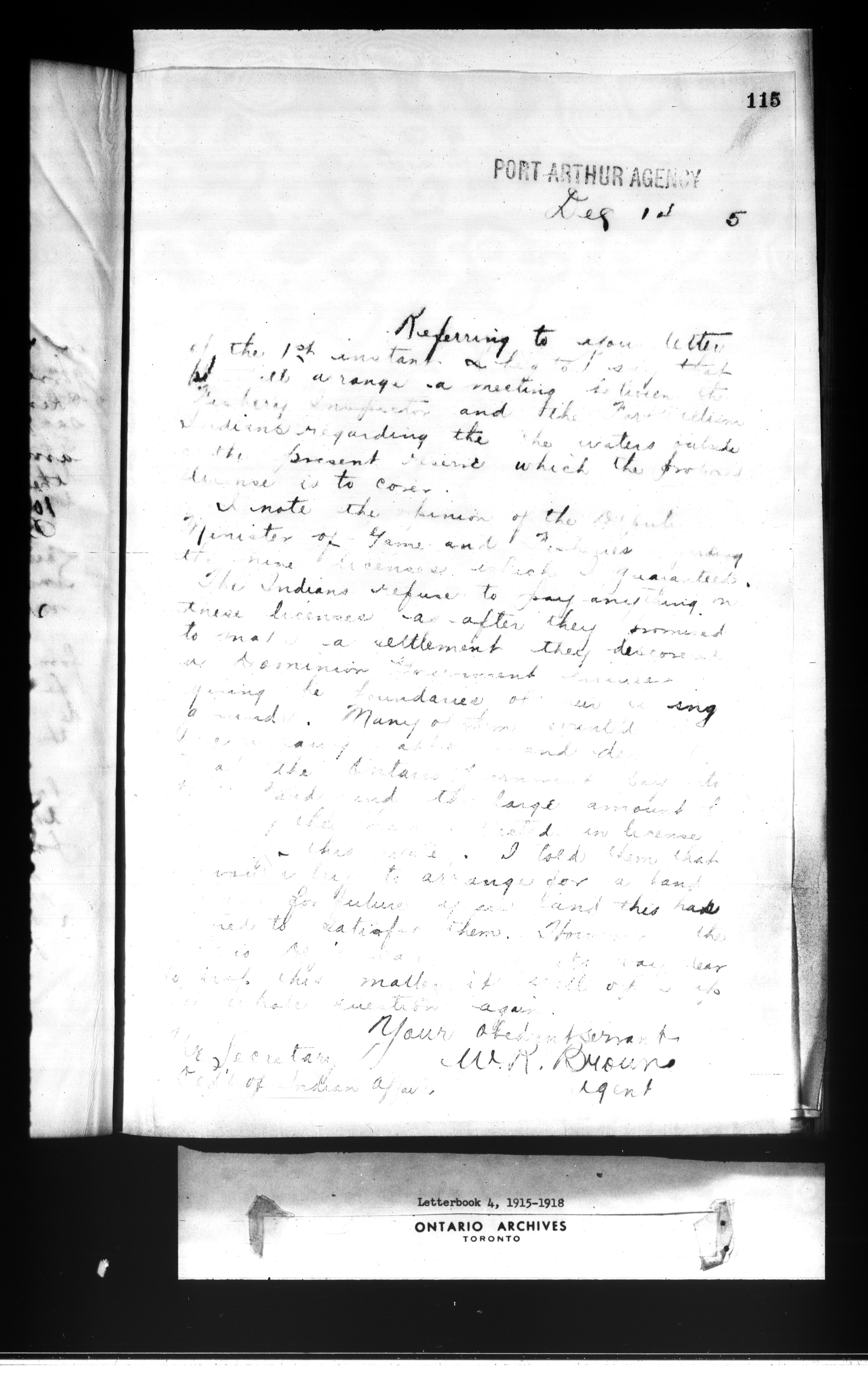Department of Indian Affairs : Port Arthur Agency : T-11944