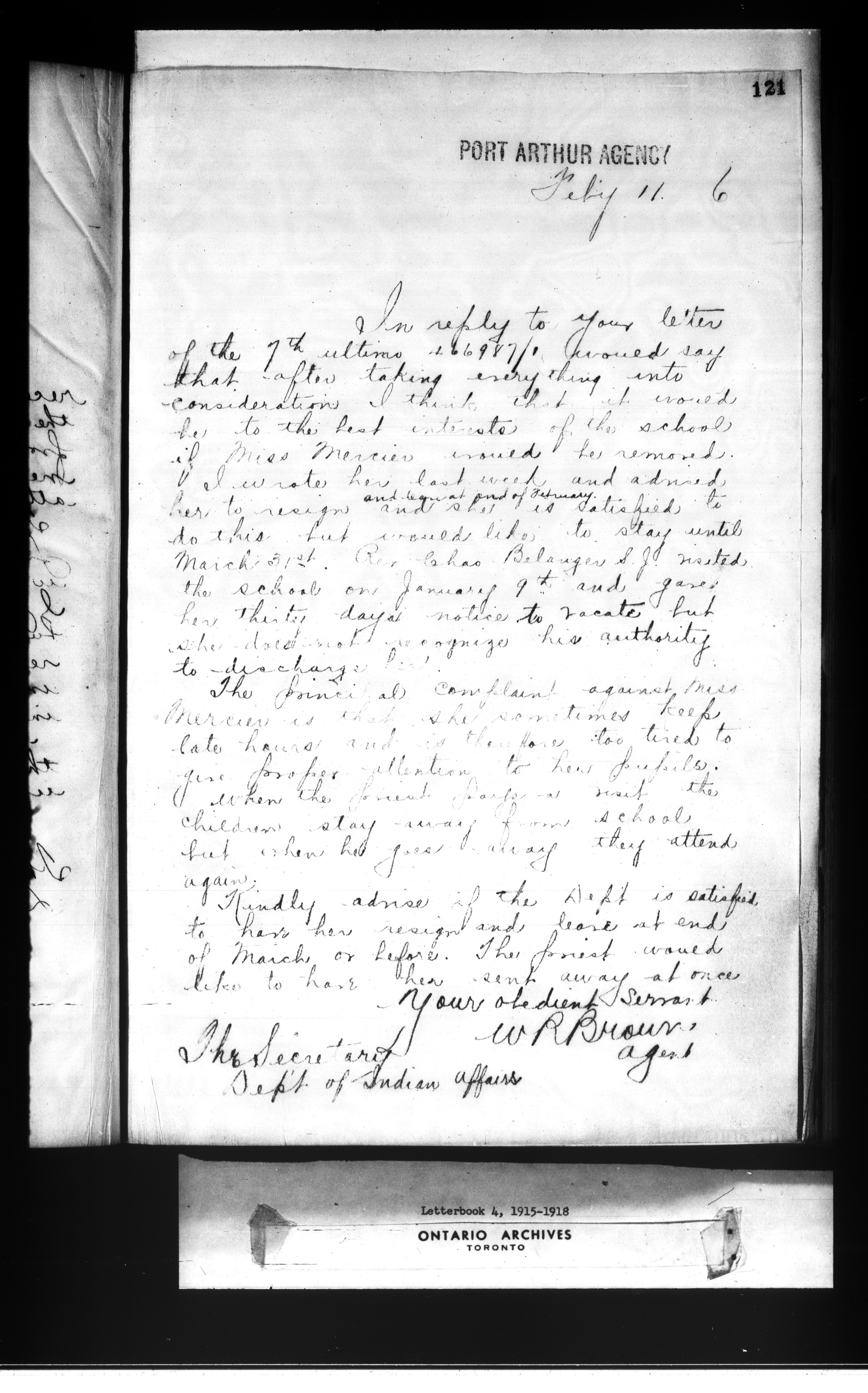 Department of Indian Affairs : Port Arthur Agency : T-11944