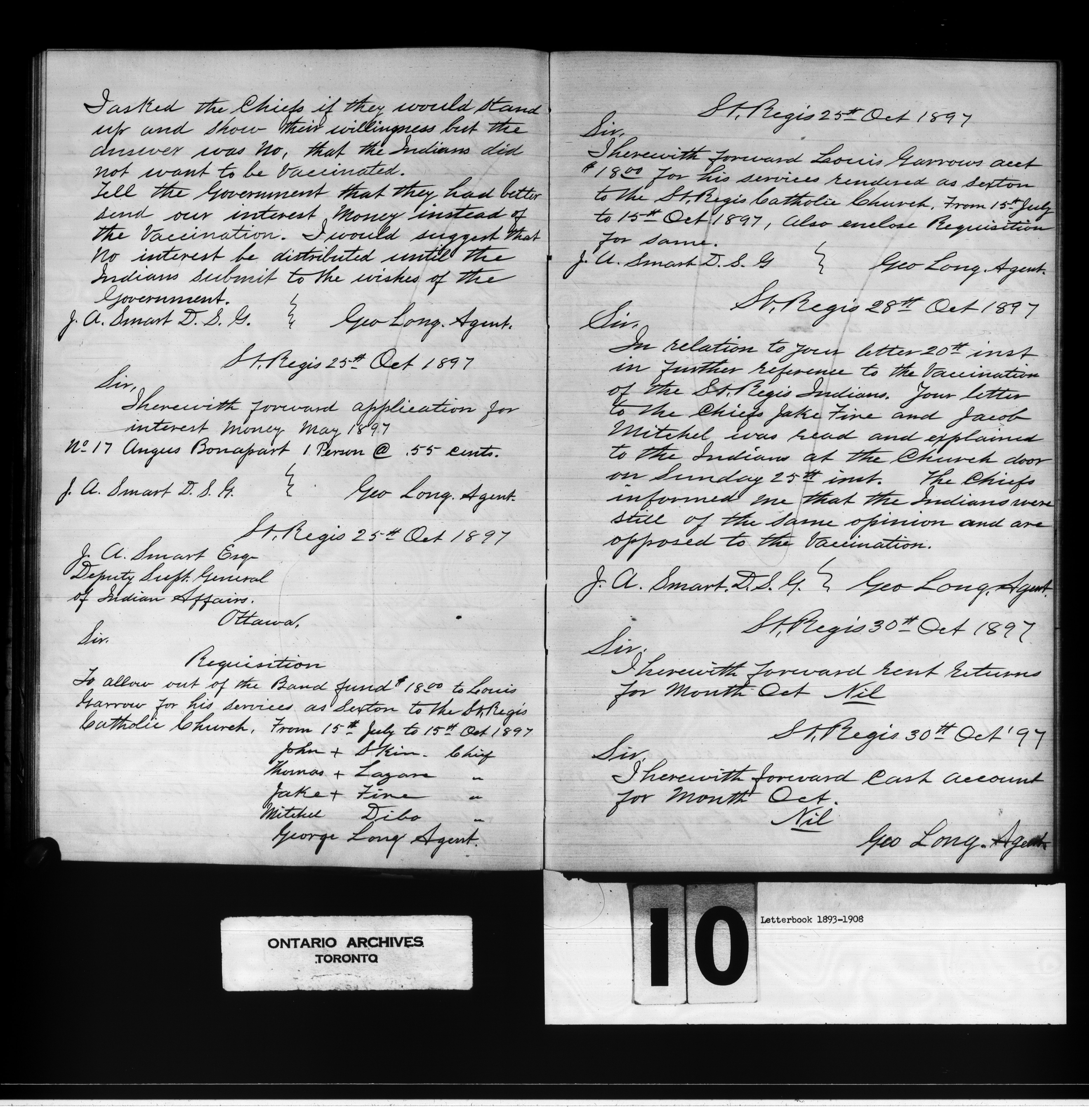 Department of Indian Affairs : St. Regis Agency, Ms. 216, Letterbooks, 1880-1903 - 11955