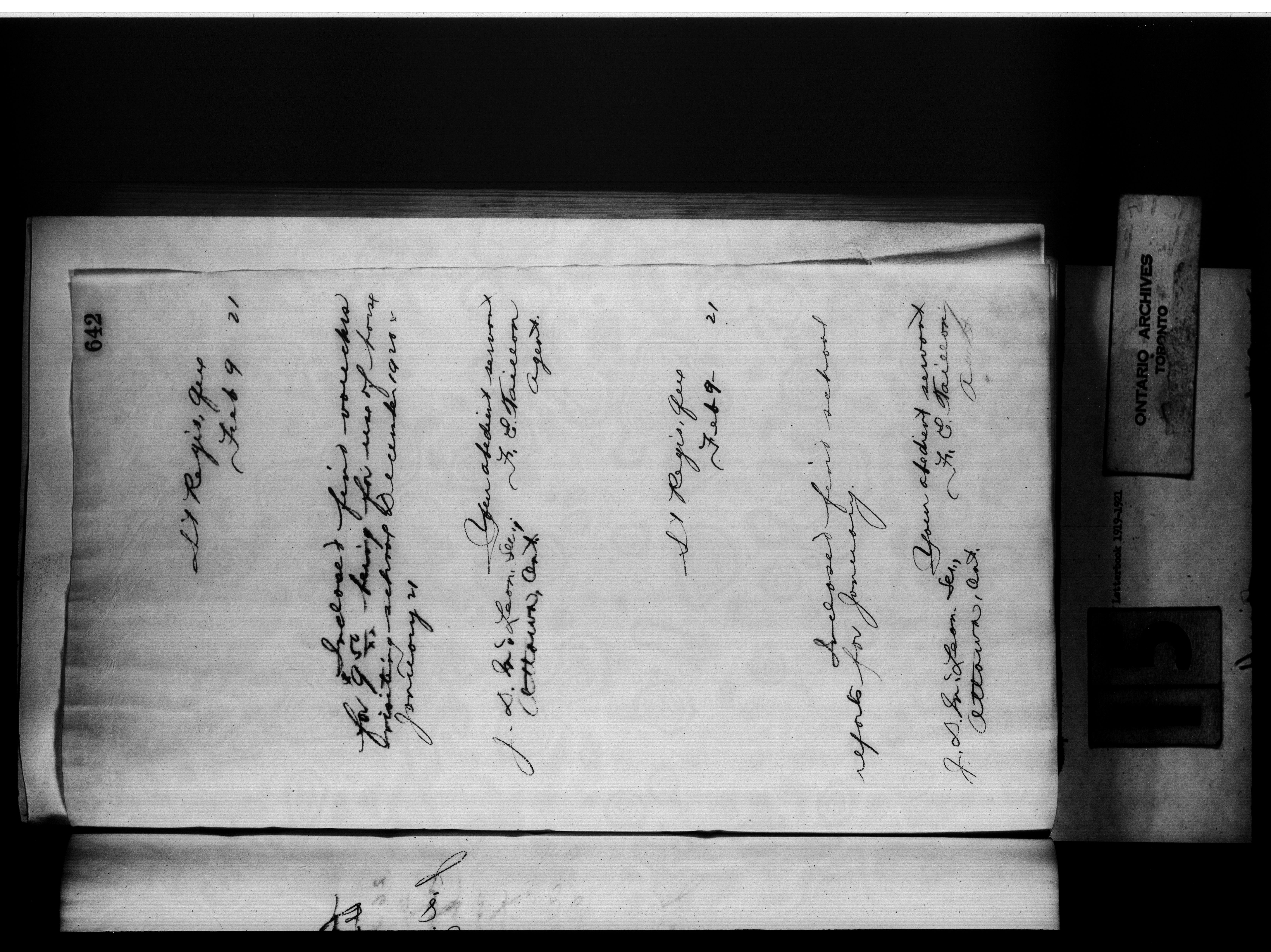 Department of Indian Affairs : St. Regis Agency, Ms. 216, Letterbooks, 1919-1921 - 11960