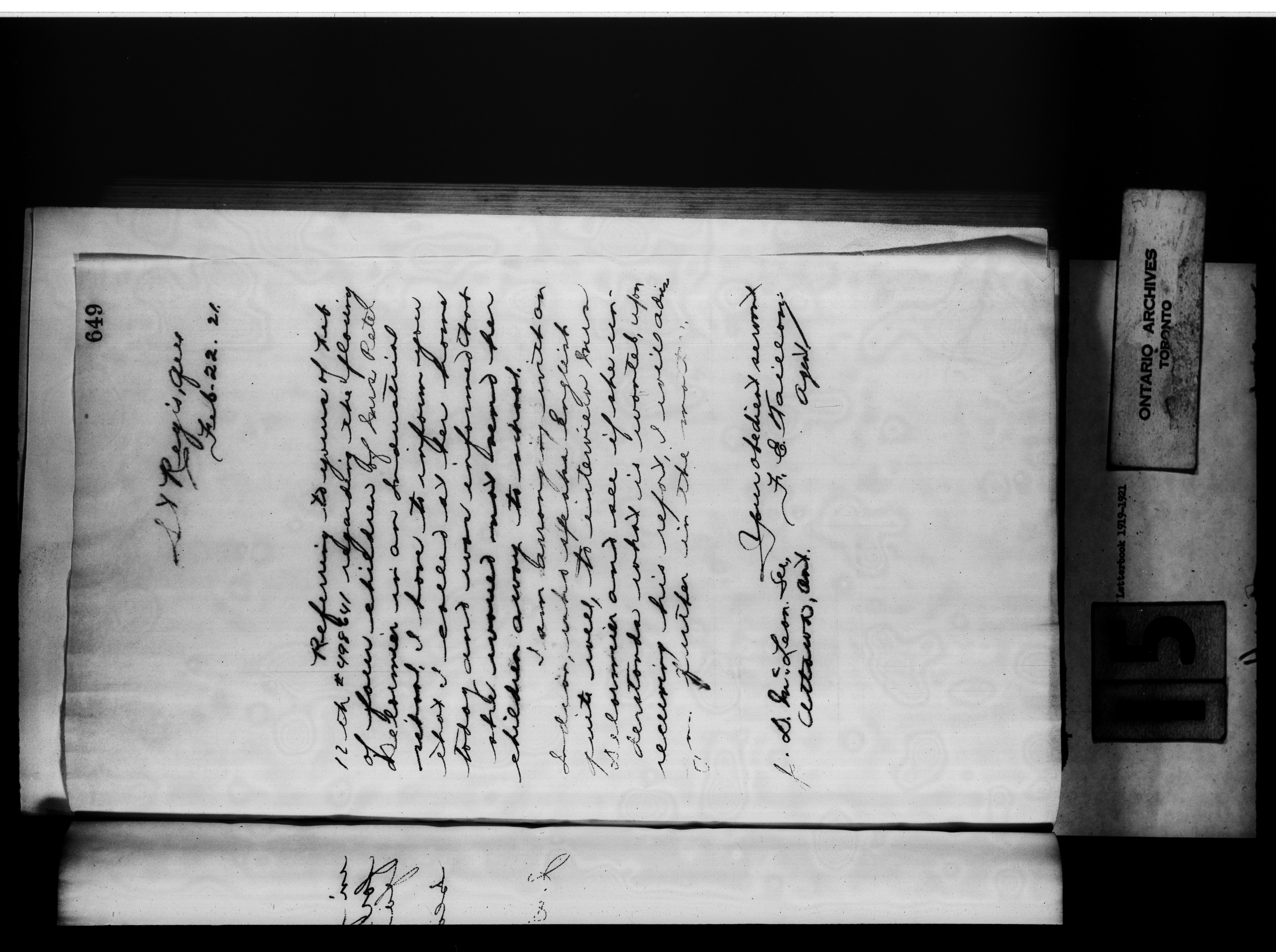 Department of Indian Affairs : St. Regis Agency, Ms. 216, Letterbooks, 1919-1921 - 11960