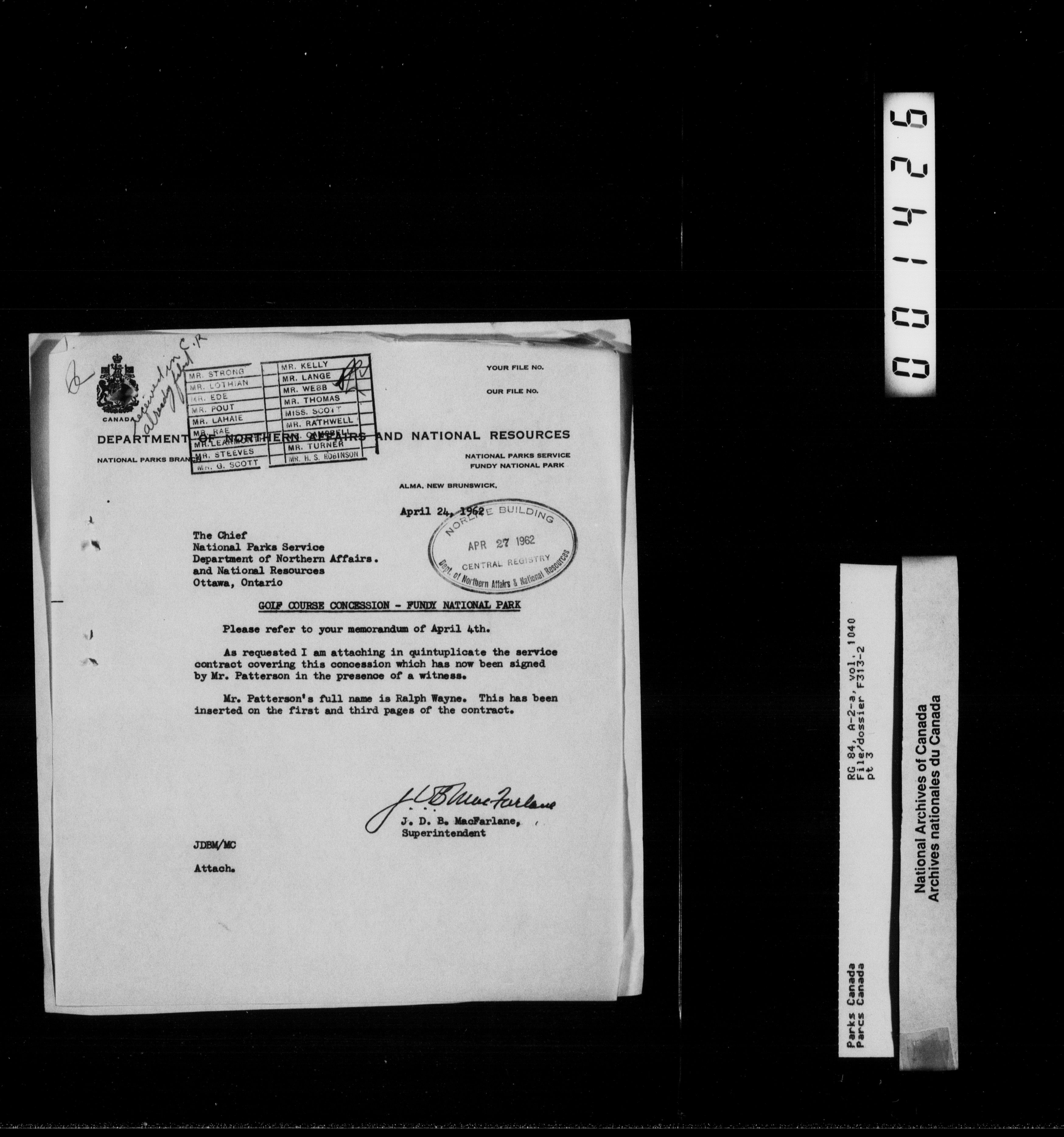 Department of Canadian Heritage, Canadian Parks Service : Park/subject classification system : T-11962