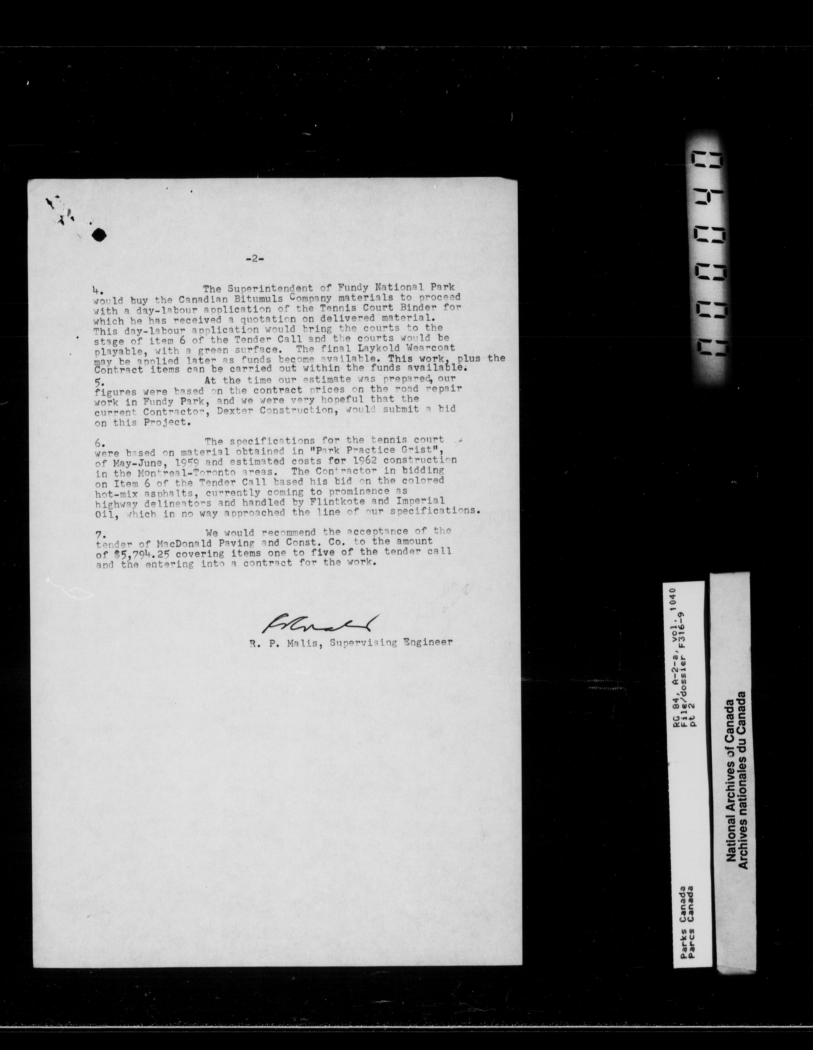 Department of Canadian Heritage, Canadian Parks Service : Park/subject classification system : T-11963
