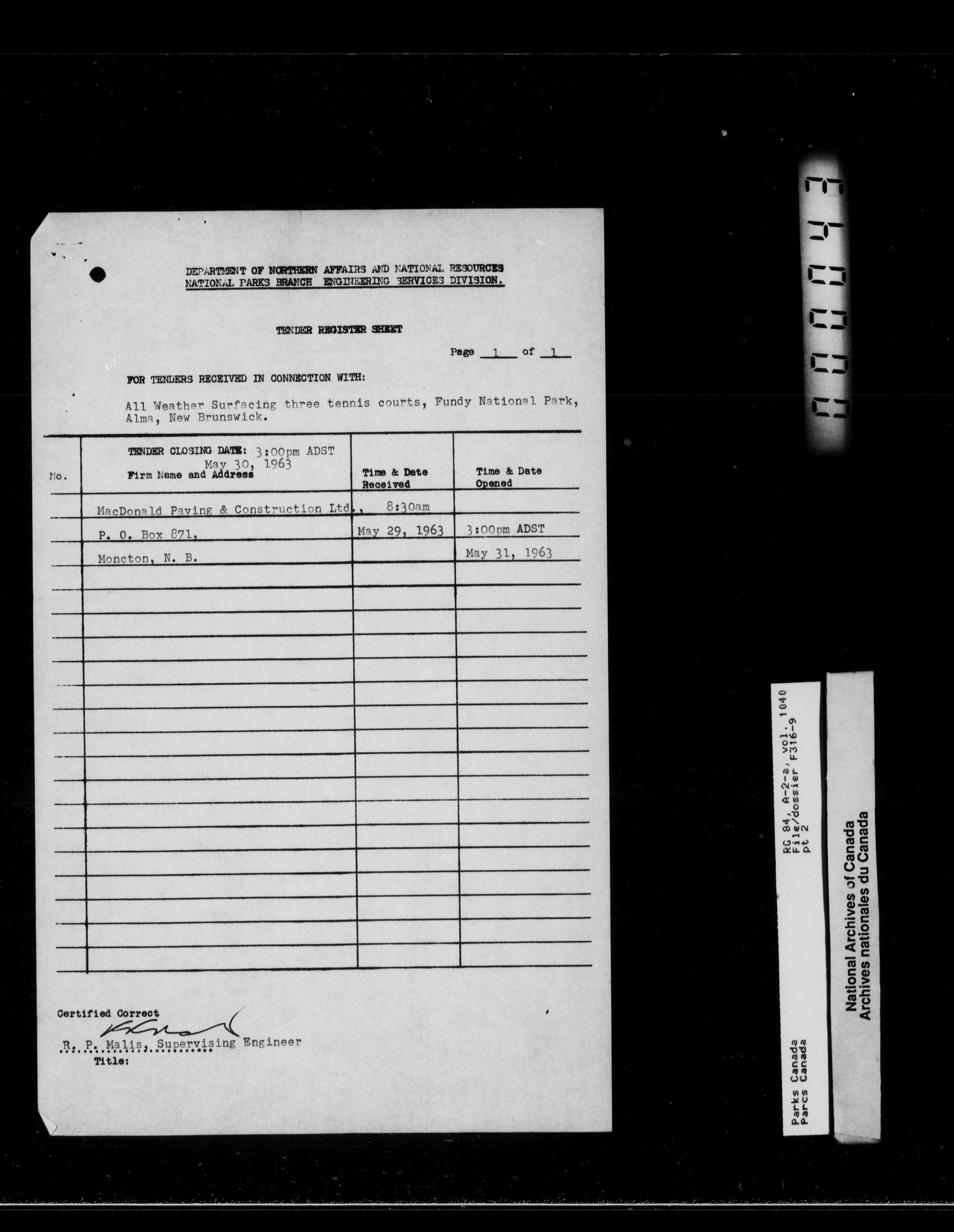 Department of Canadian Heritage, Canadian Parks Service : Park/subject classification system : T-11963