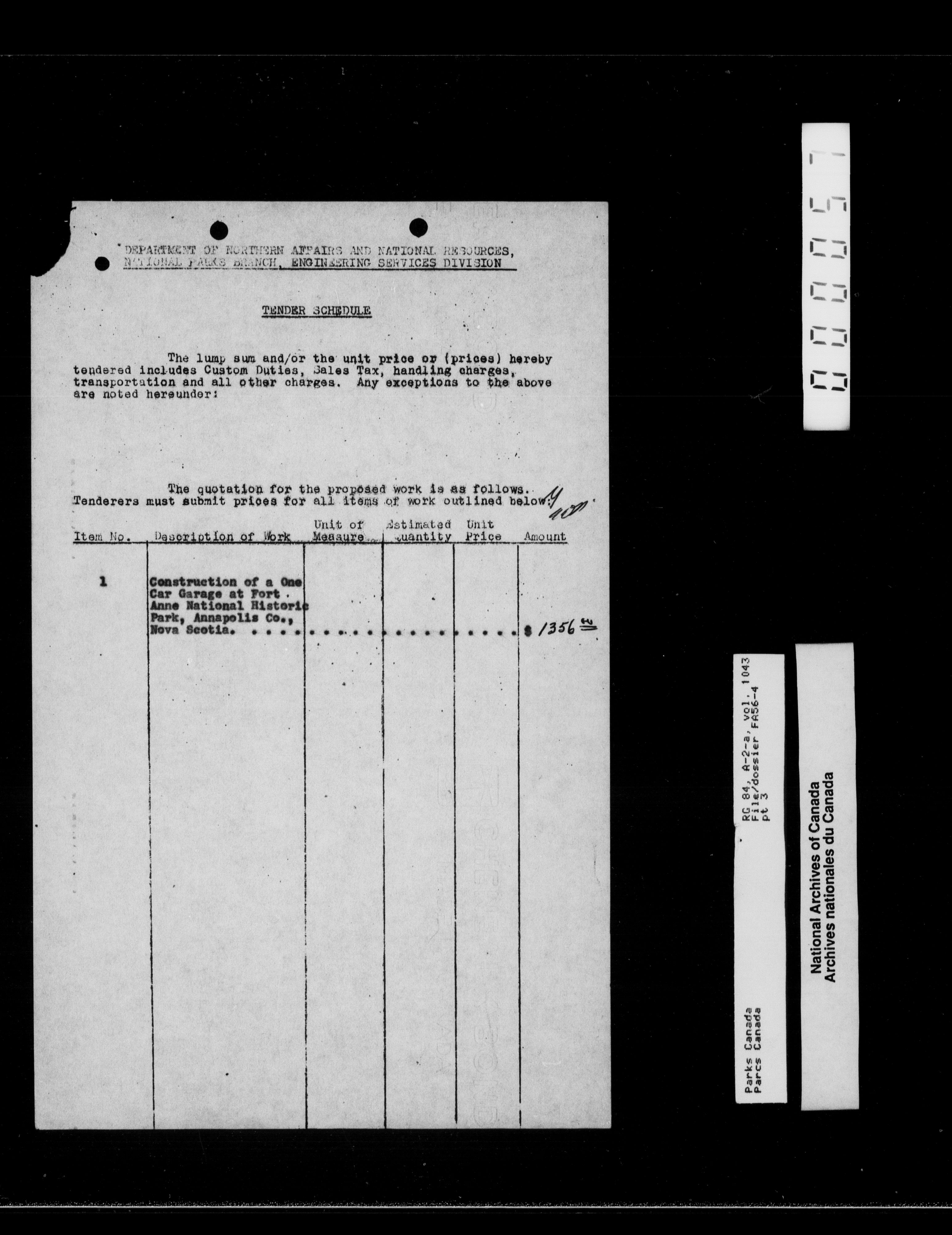 Department of Canadian Heritage, Canadian Parks Service : Park/subject classification system - 11965