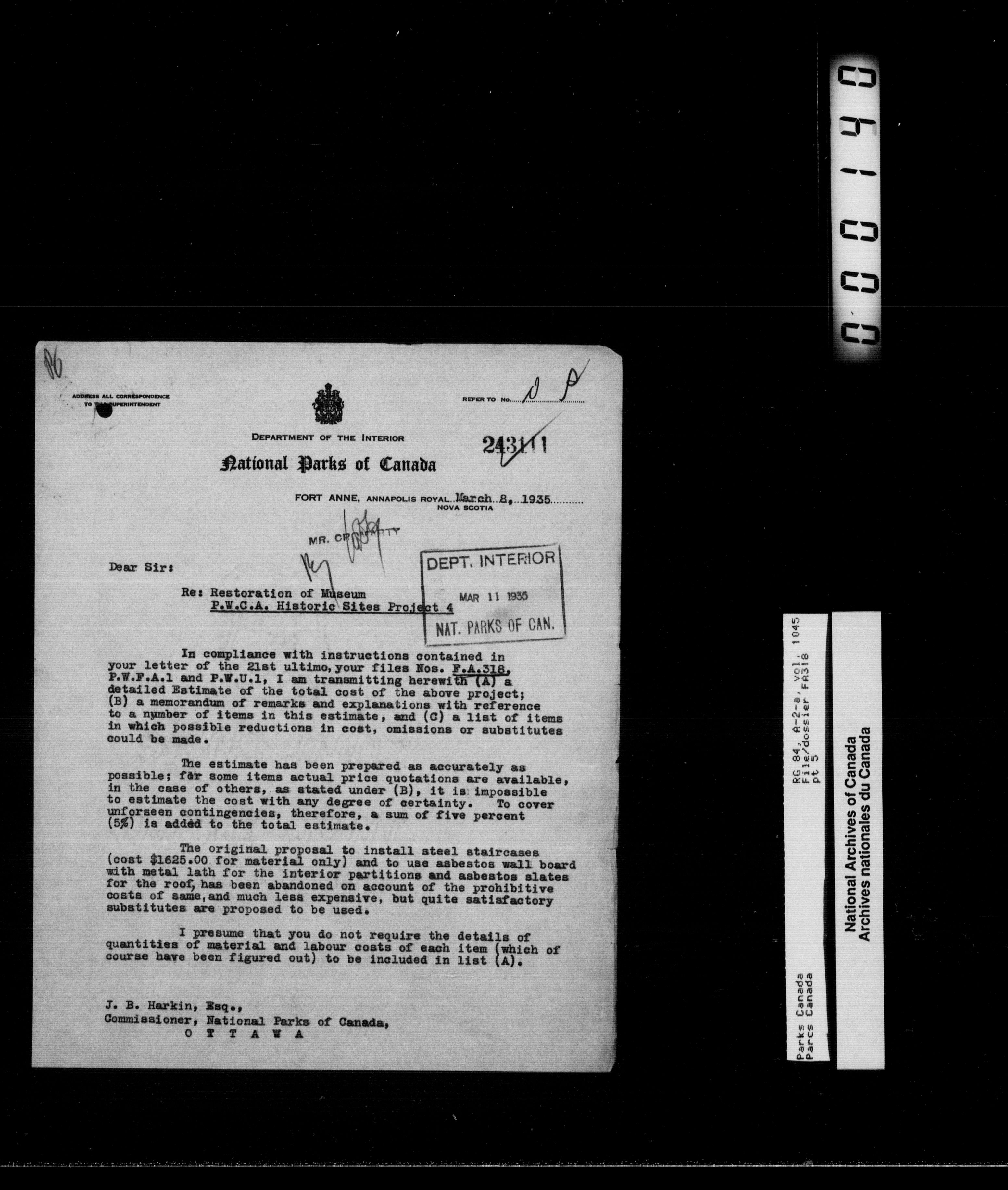 Department of Canadian Heritage, Canadian Parks Service : Park/subject classification system - 11967