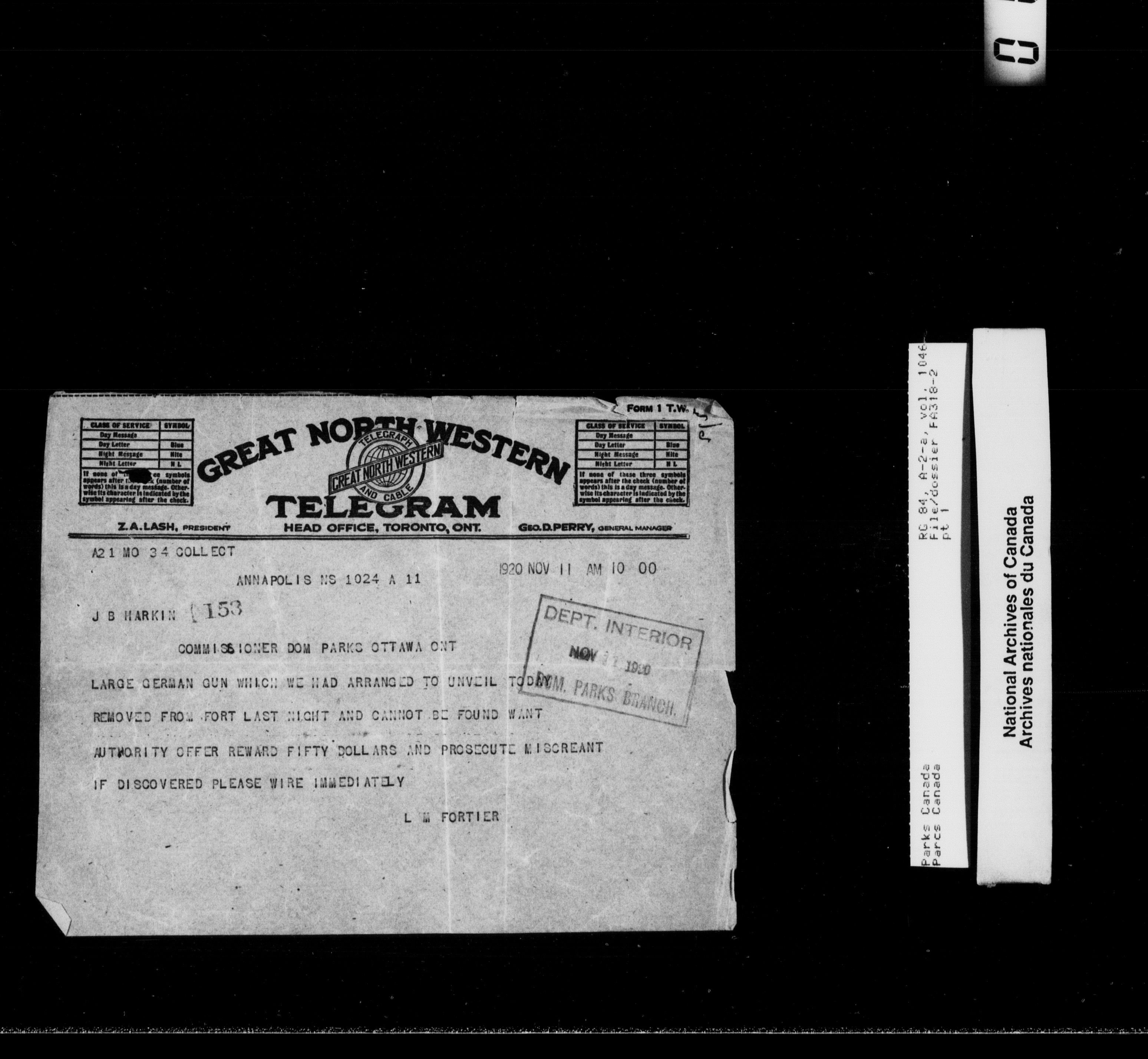 Department of Canadian Heritage, Canadian Parks Service : Park/subject classification system : T-11968