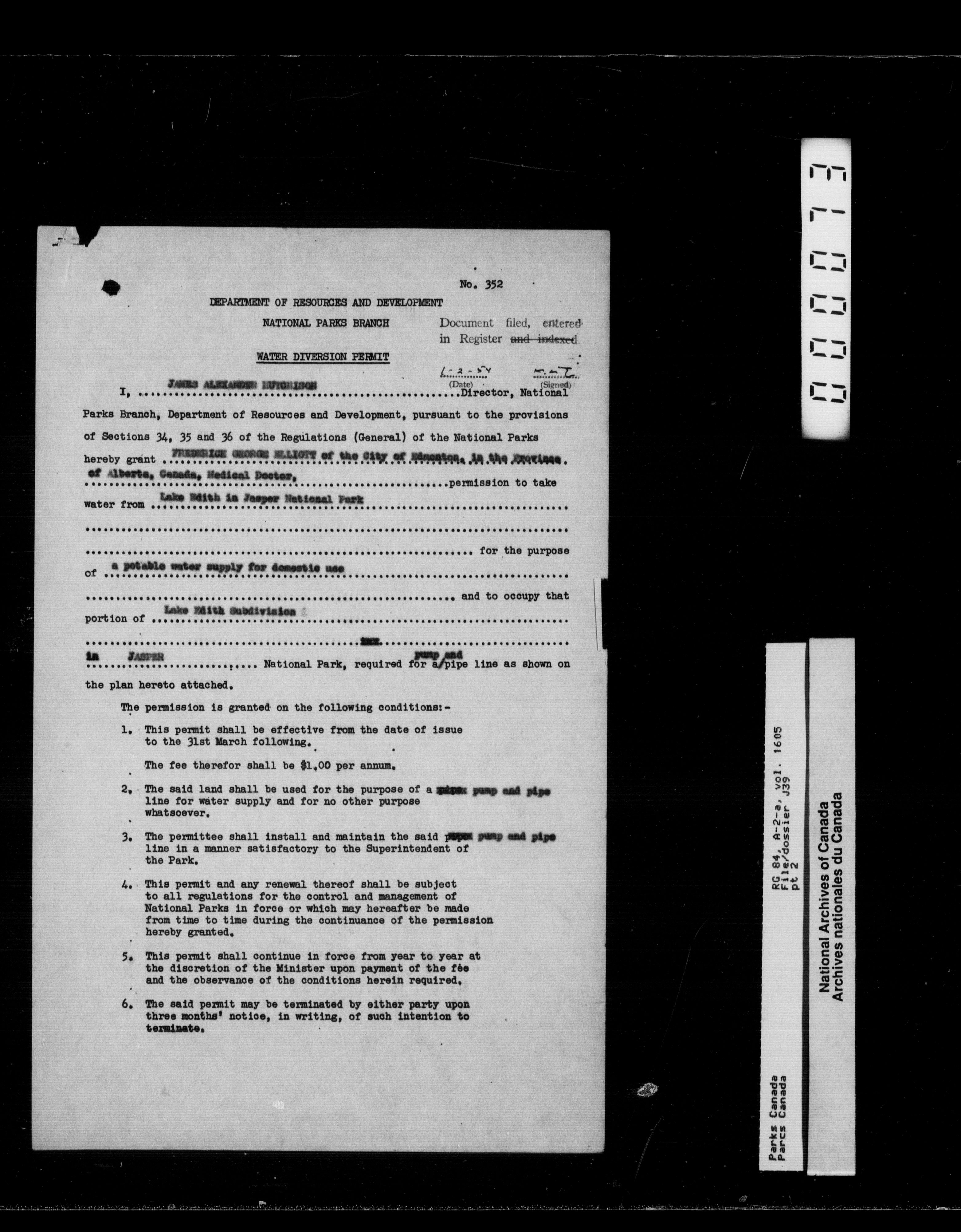 Department of Canadian Heritage, Canadian Parks Service : Park/subject classification system : T-11983