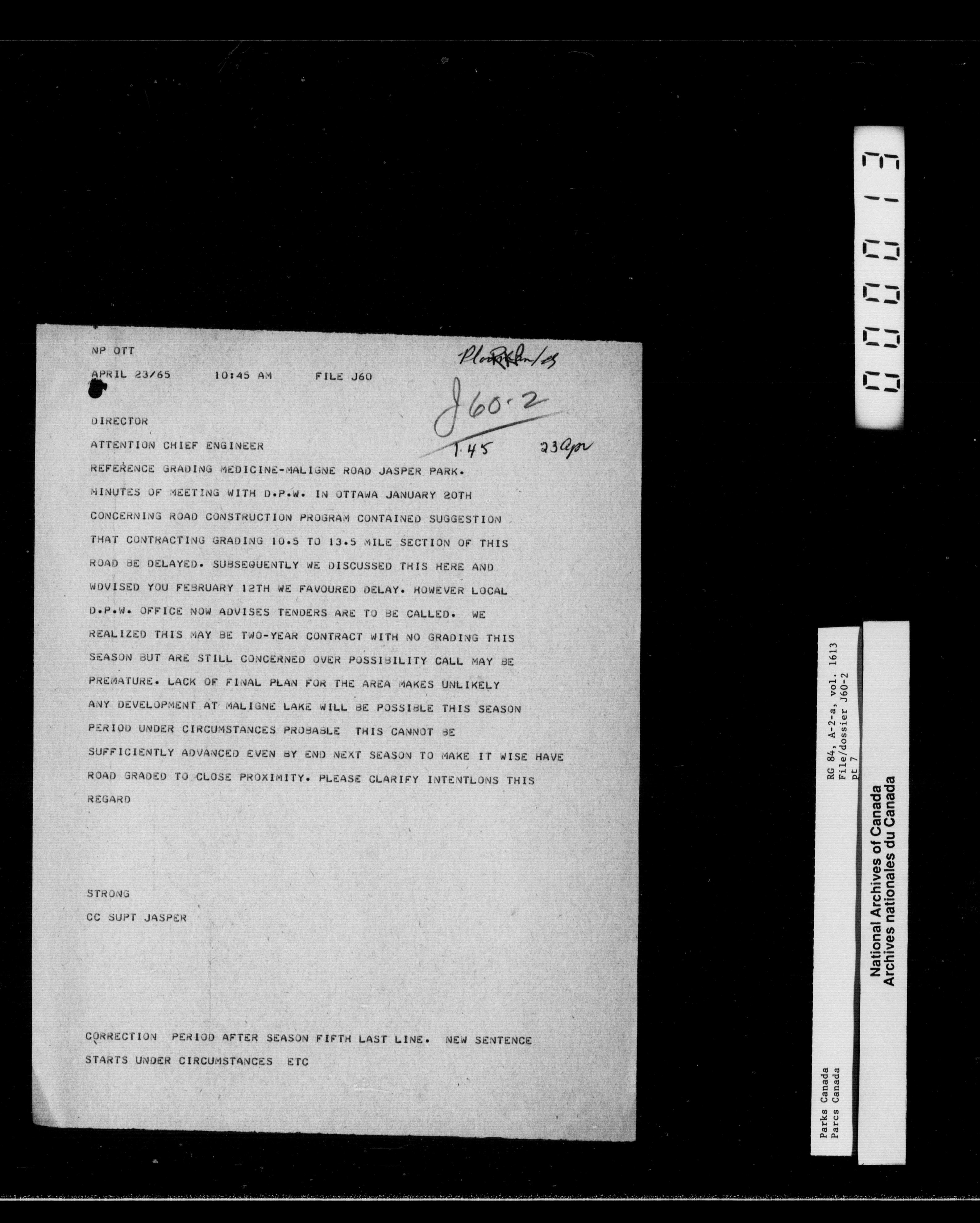 Volume 1612, file J60-2 (pt. 7) (cont'd) to Volume 1614, File J60 (plans 1)