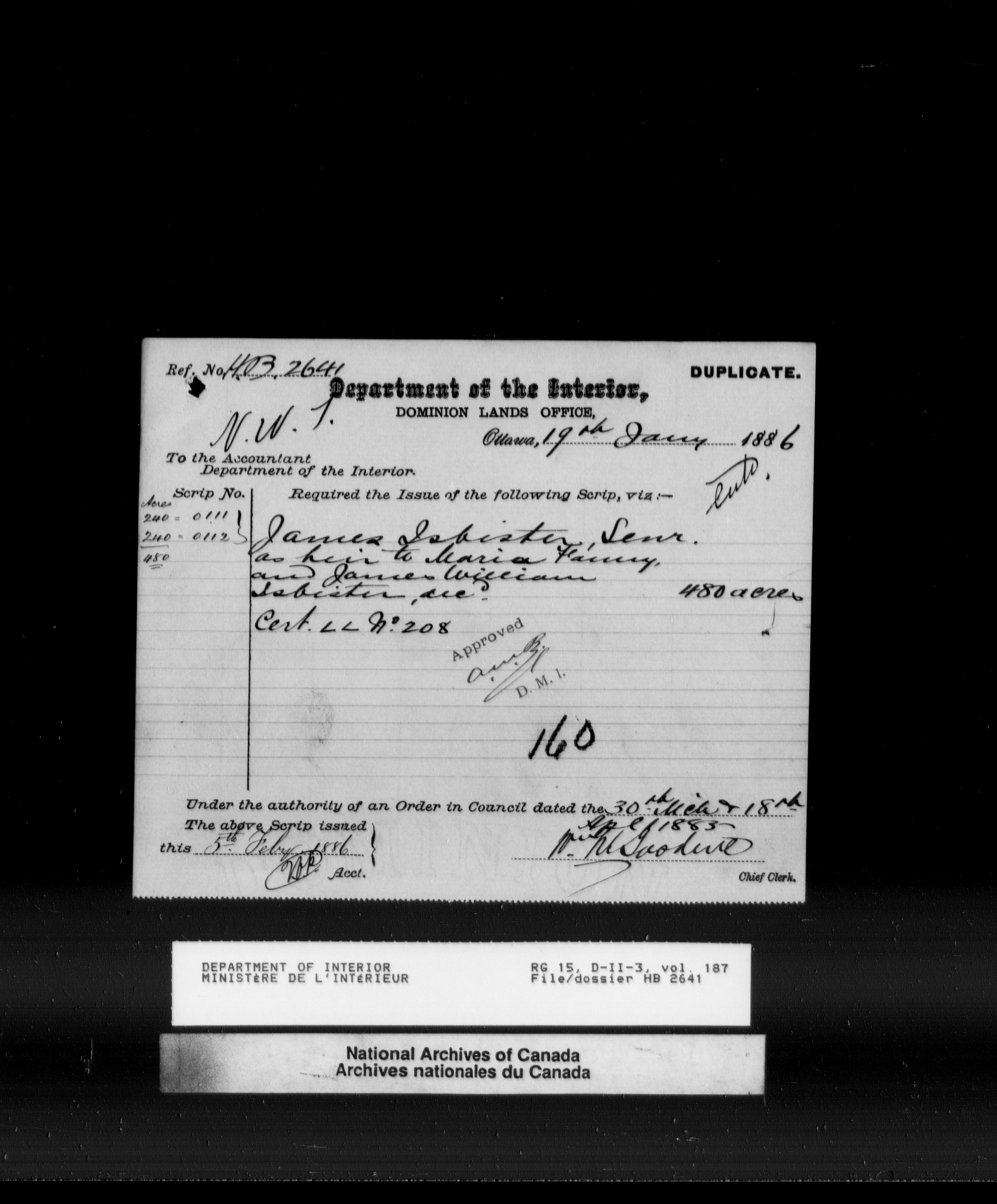 Dominion Lands Branch : Half-Breed files (1885-1887) - 12028