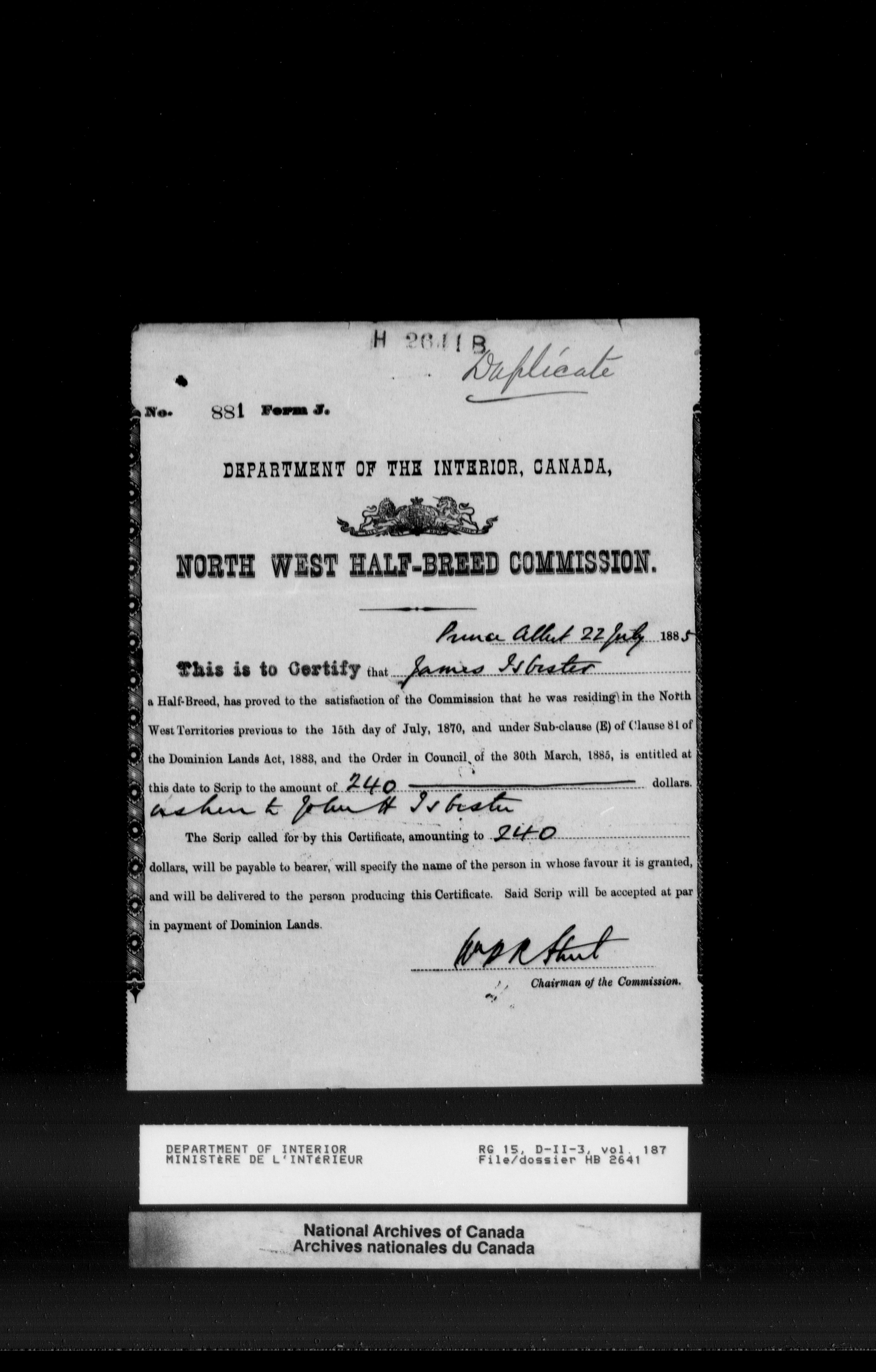Dominion Lands Branch : Half-Breed files (1885-1887) - 12028