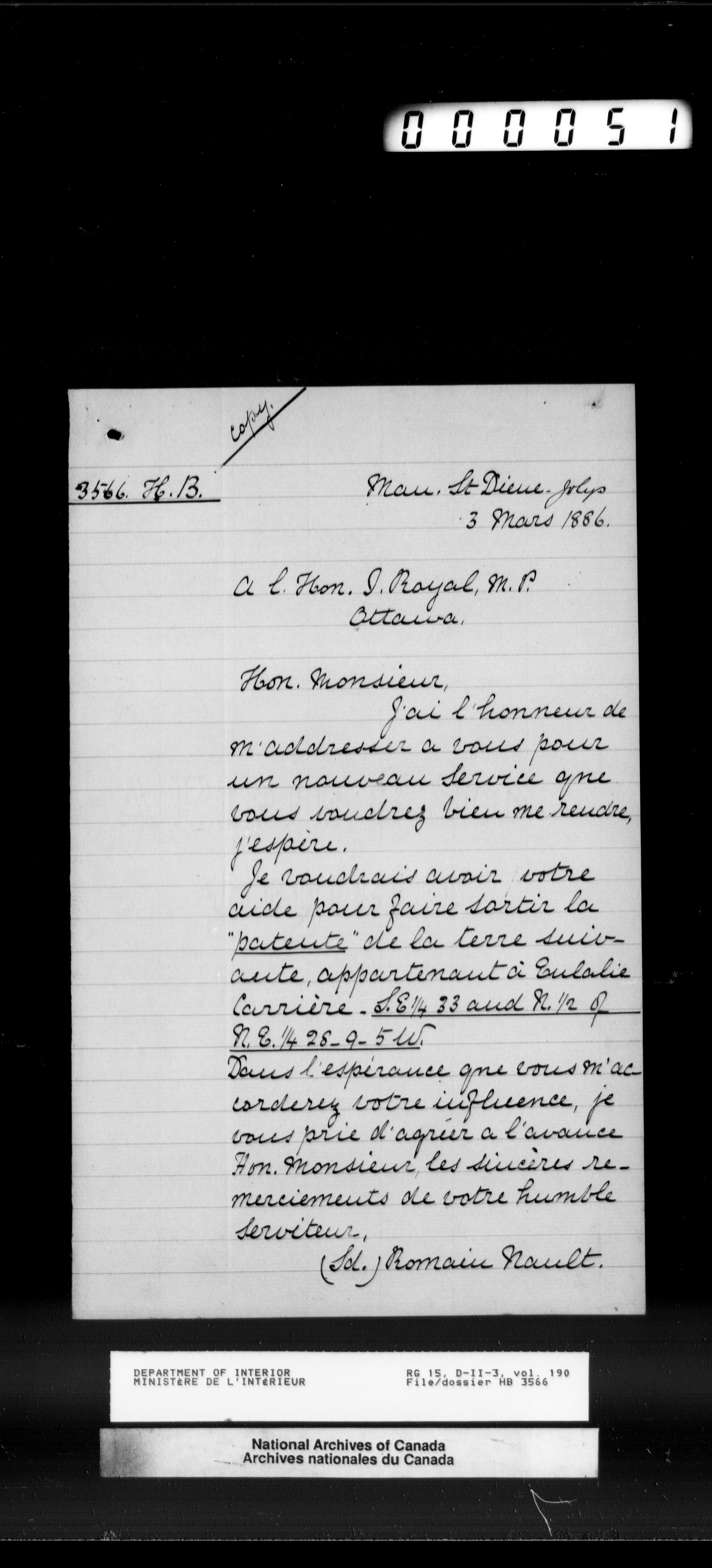 Dominion Lands Branch : Half-Breed files (1885-1887) - 12031