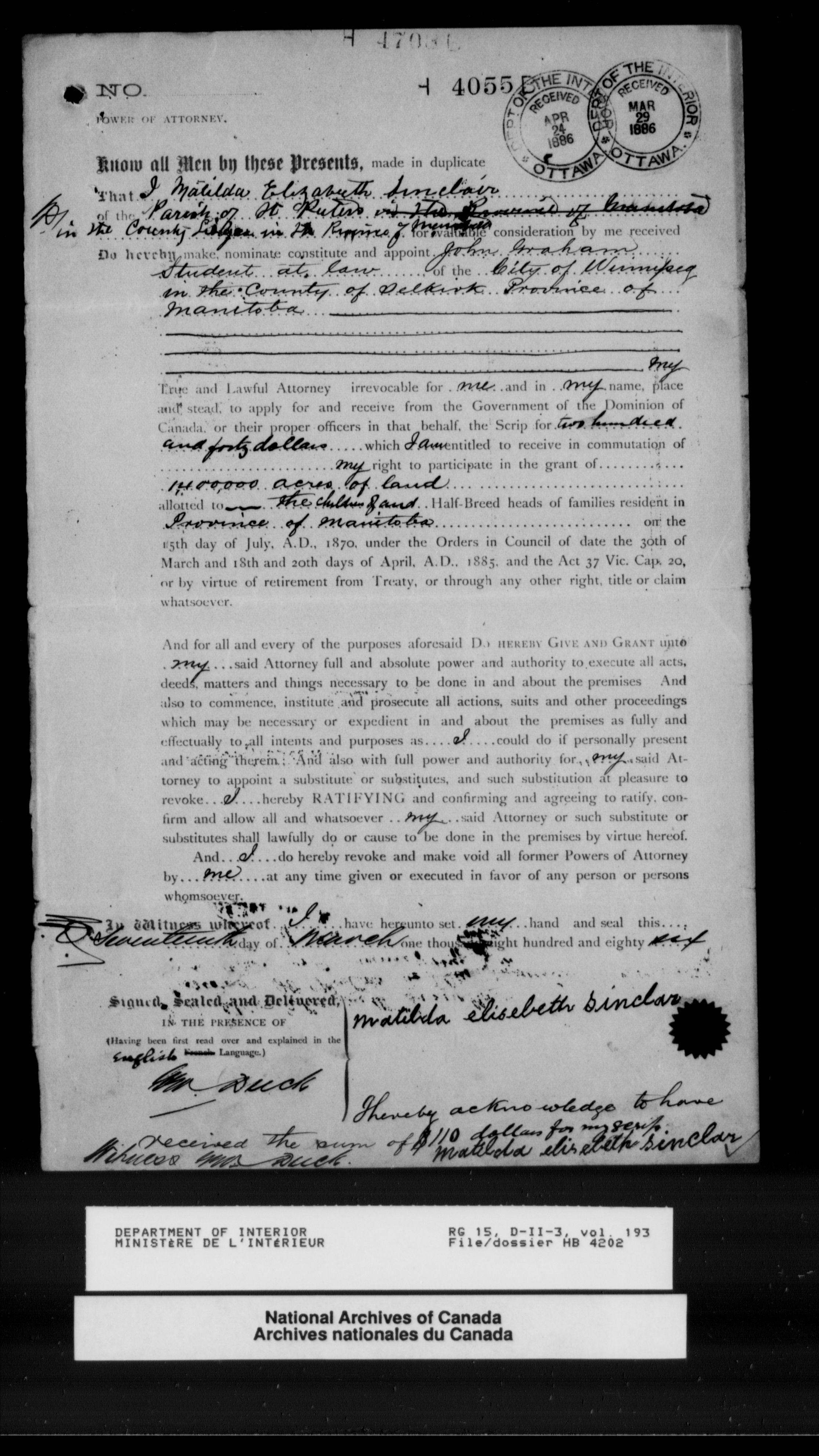Dominion Lands Branch : Half-Breed files (1885-1887) - 12032