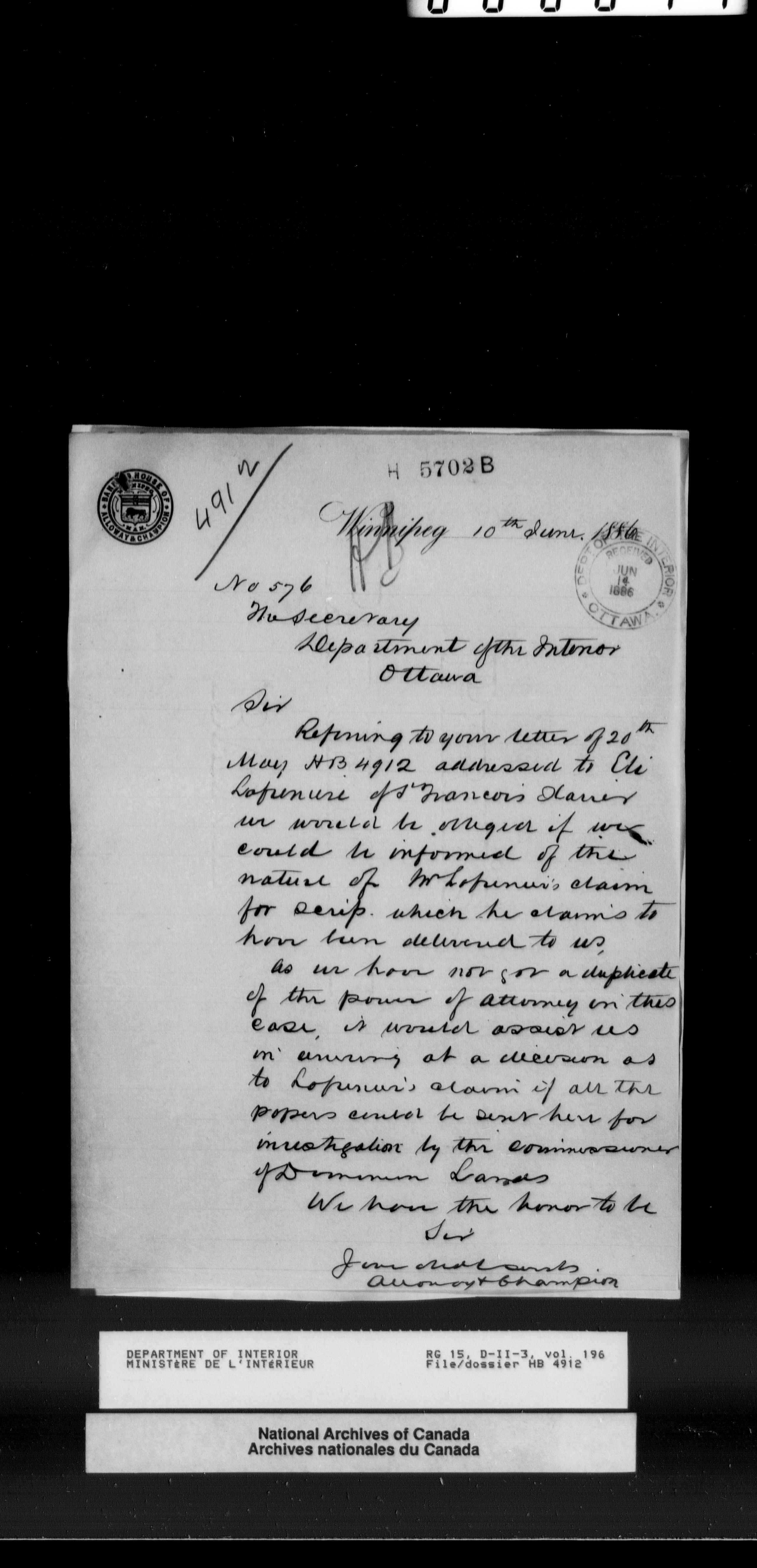 Dominion Lands Branch : Half-Breed files (1885-1887) - 12035