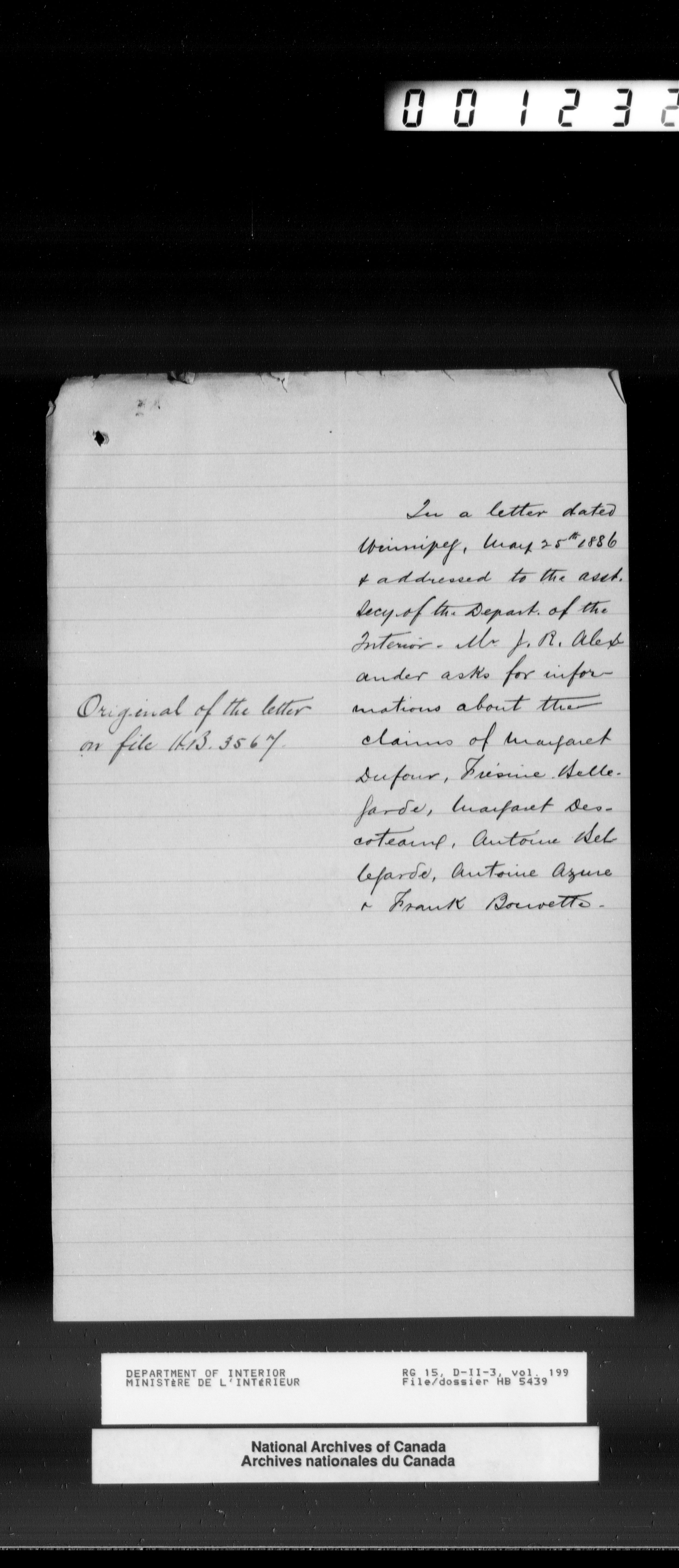 Dominion Lands Branch : Half-Breed files (1885-1887) - 12036