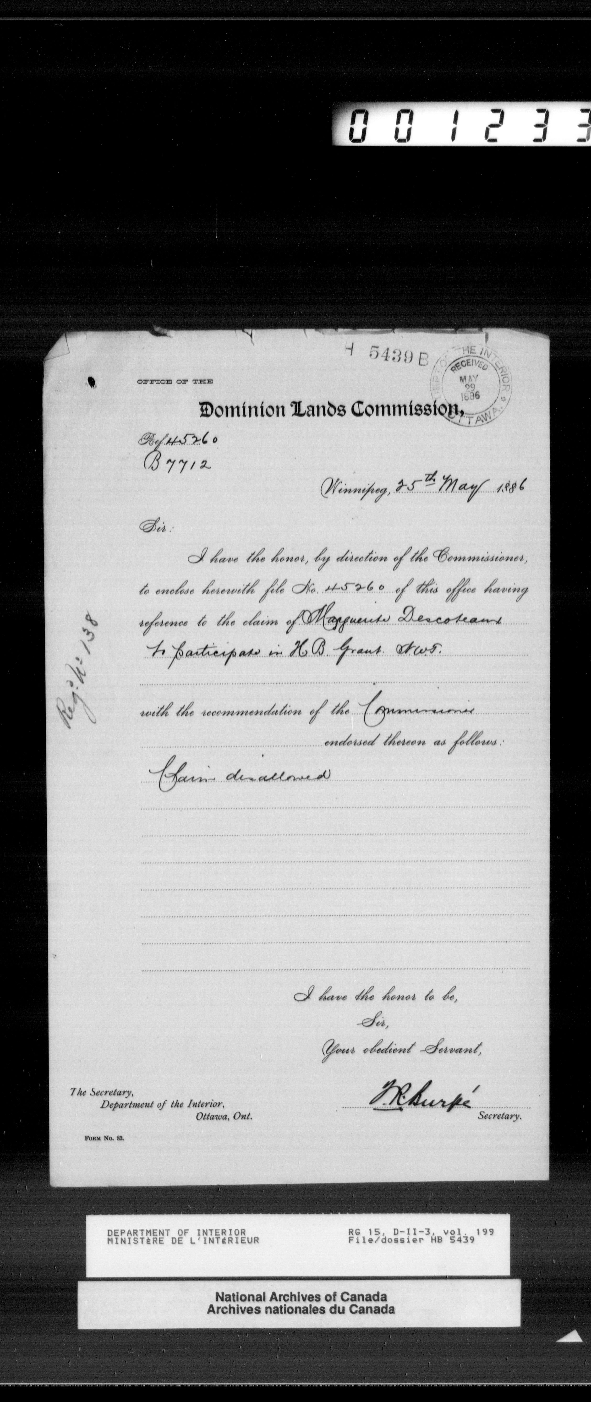 Dominion Lands Branch : Half-Breed files (1885-1887) - 12036