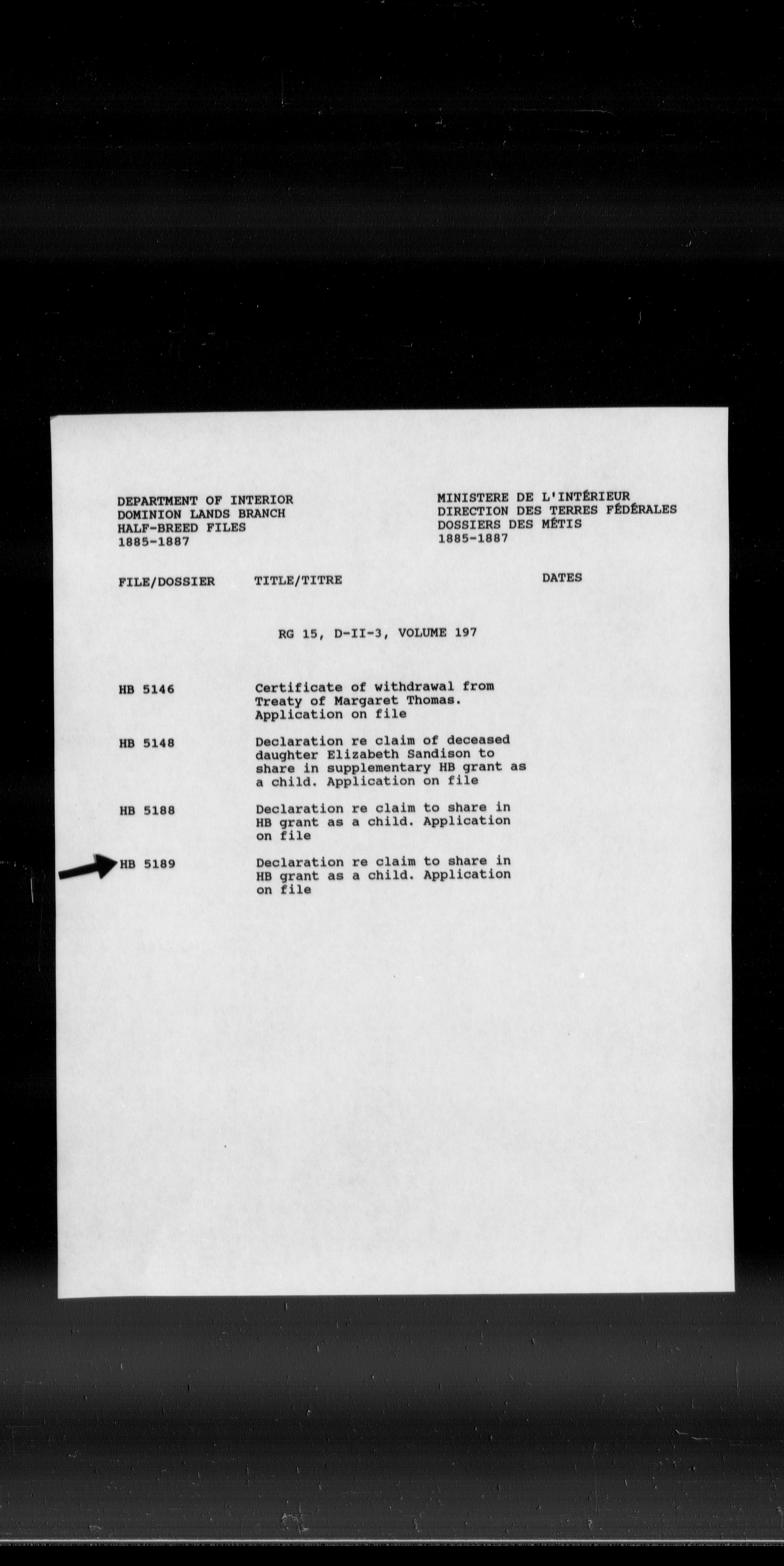 Dominion Lands Branch : Half-Breed files (1885-1887) - 12036