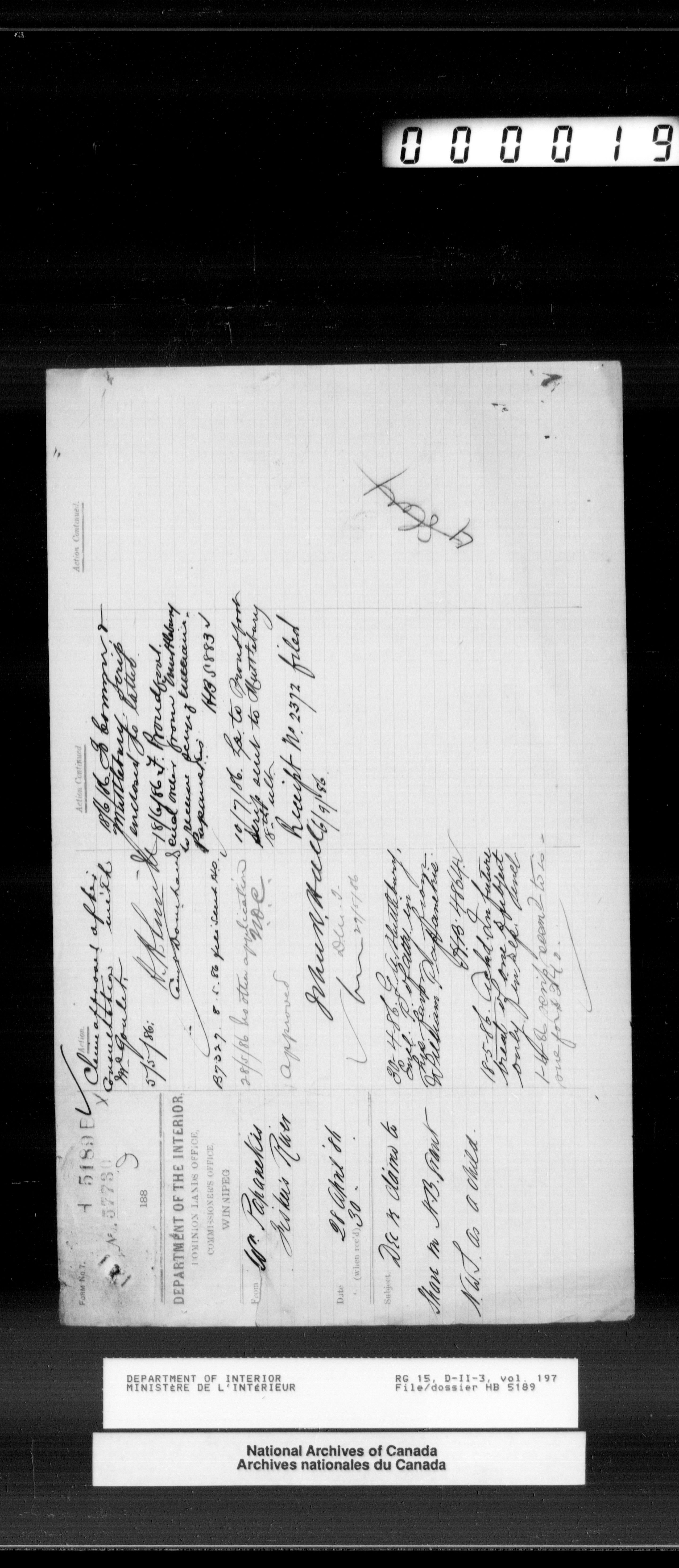 Dominion Lands Branch : Half-Breed files (1885-1887) - 12036