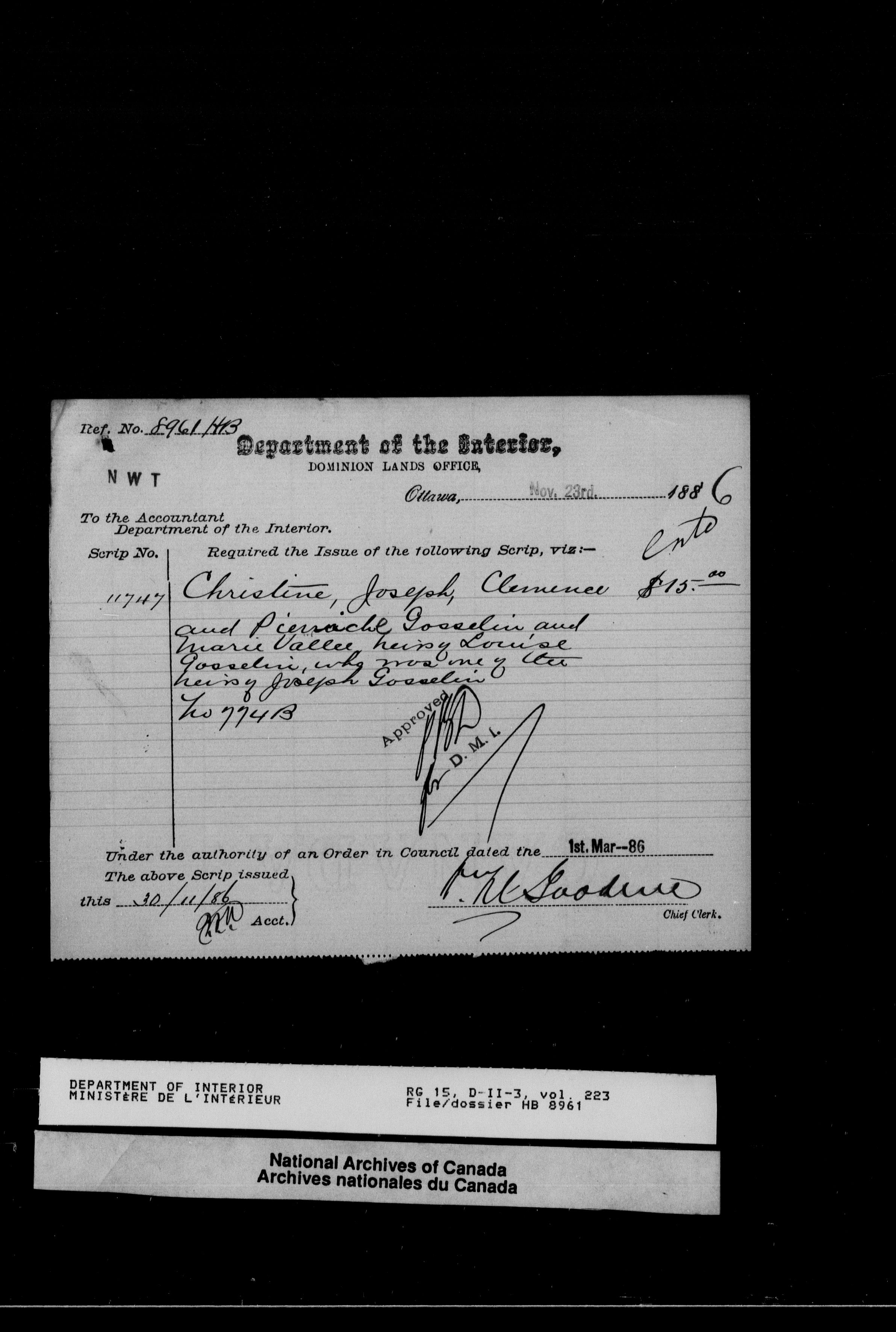 Dominion Lands Branch : Half-Breed files (1885-1887) - 12044