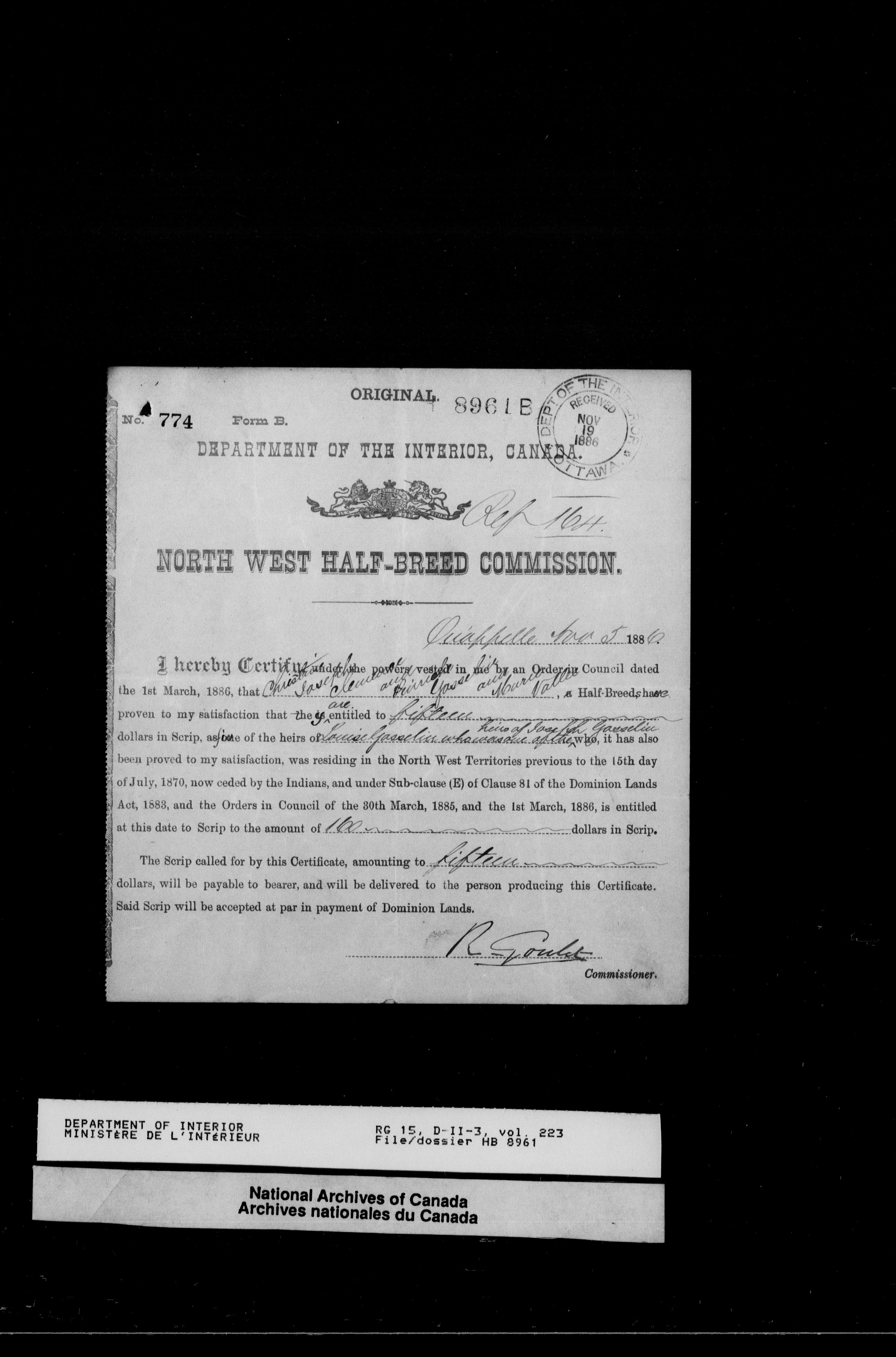 Dominion Lands Branch : Half-Breed files (1885-1887) - 12044