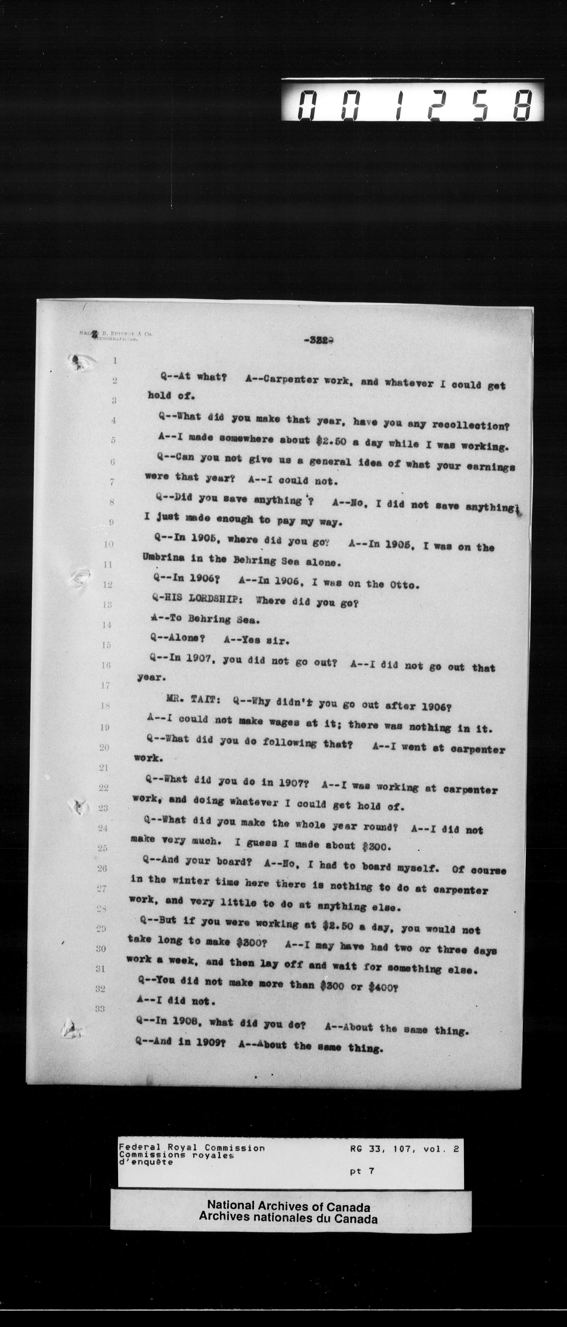 Commission to Investigate into and Report upon Claims of certain Canadian Pelagic Sealers Alleged to have been damnified by reason of the Pelagic Sealing Treaty of the 7th July, 1911 between Great Britain and the United States, Russia, and Japan, and by the Paris Award Regulations of 1893 - T-12049
