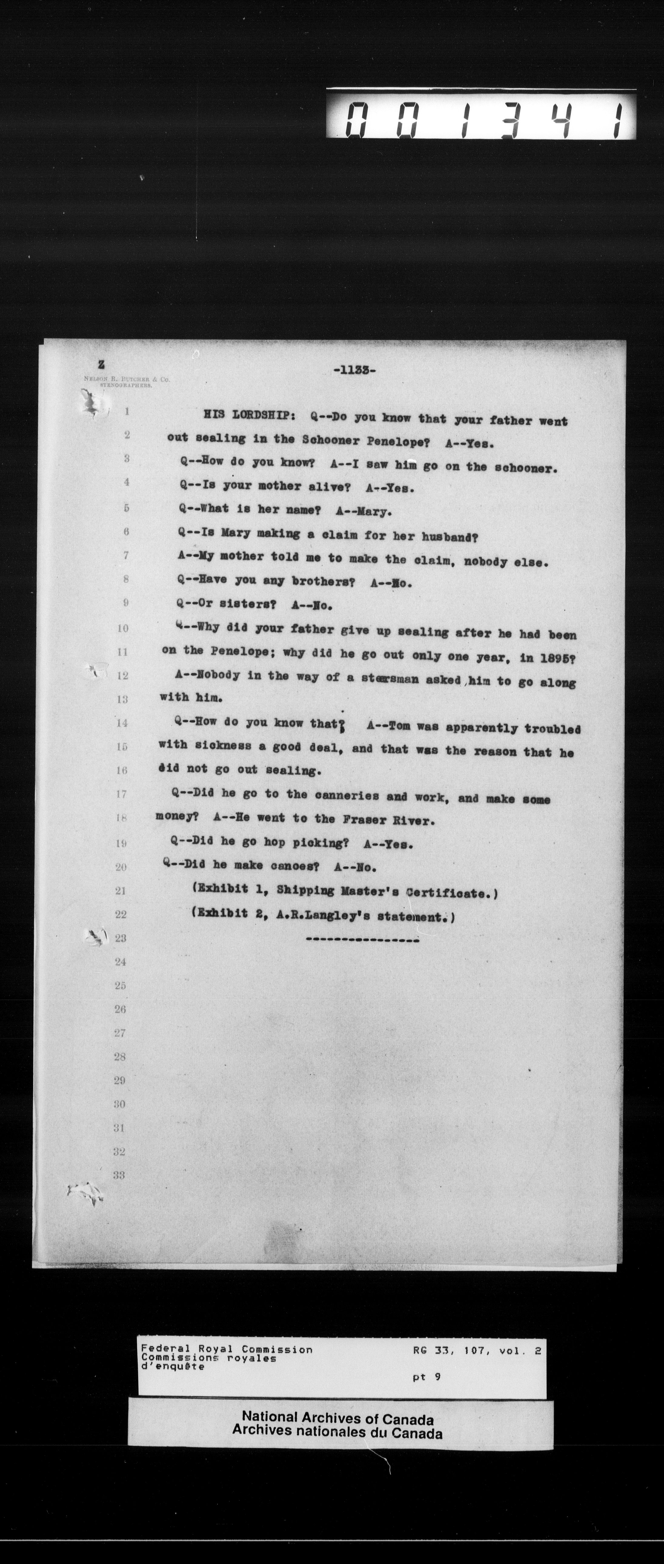 Commission to Investigate into and Report upon Claims of certain Canadian Pelagic Sealers Alleged to have been damnified by reason of the Pelagic Sealing Treaty of the 7th July, 1911 between Great Britain and the United States, Russia, and Japan, and by the Paris Award Regulations of 1893 fonds : T-12050