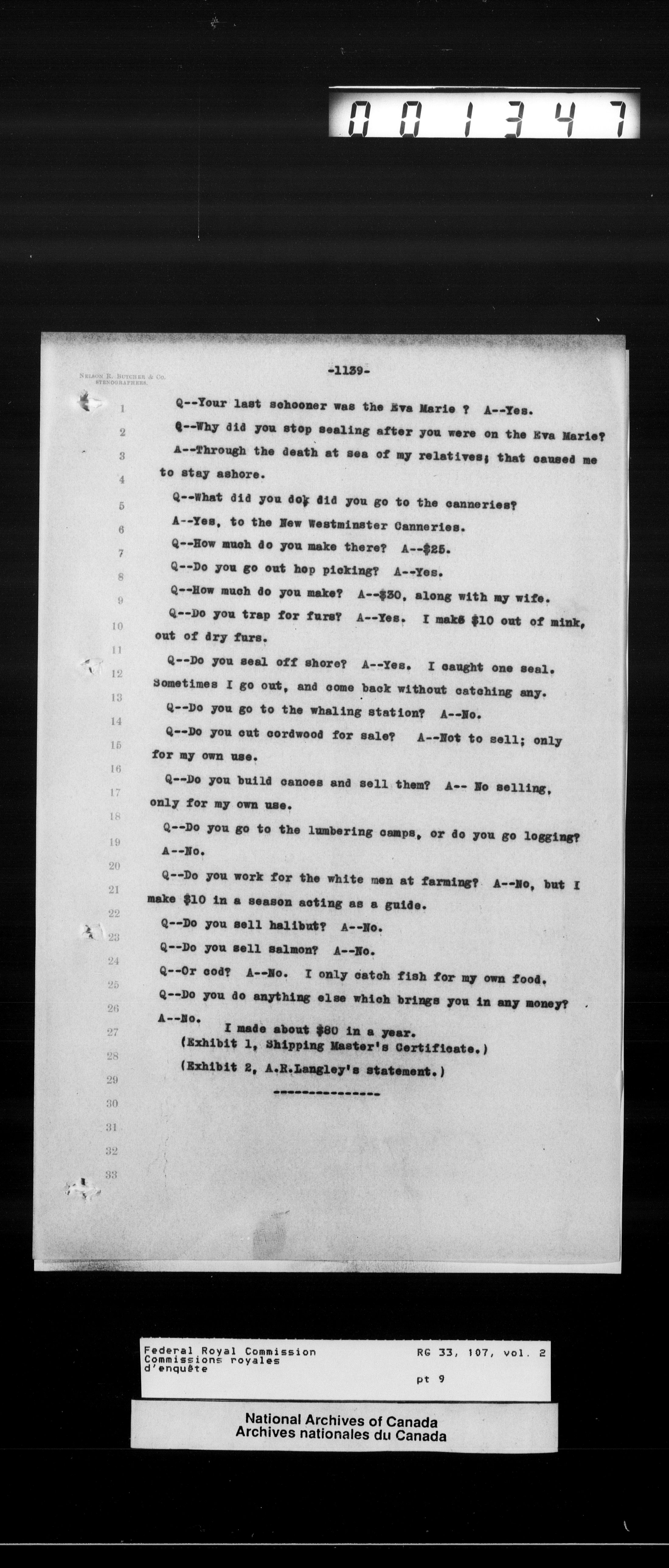 Commission to Investigate into and Report upon Claims of certain Canadian Pelagic Sealers Alleged to have been damnified by reason of the Pelagic Sealing Treaty of the 7th July, 1911 between Great Britain and the United States, Russia, and Japan, and by the Paris Award Regulations of 1893 - 12050