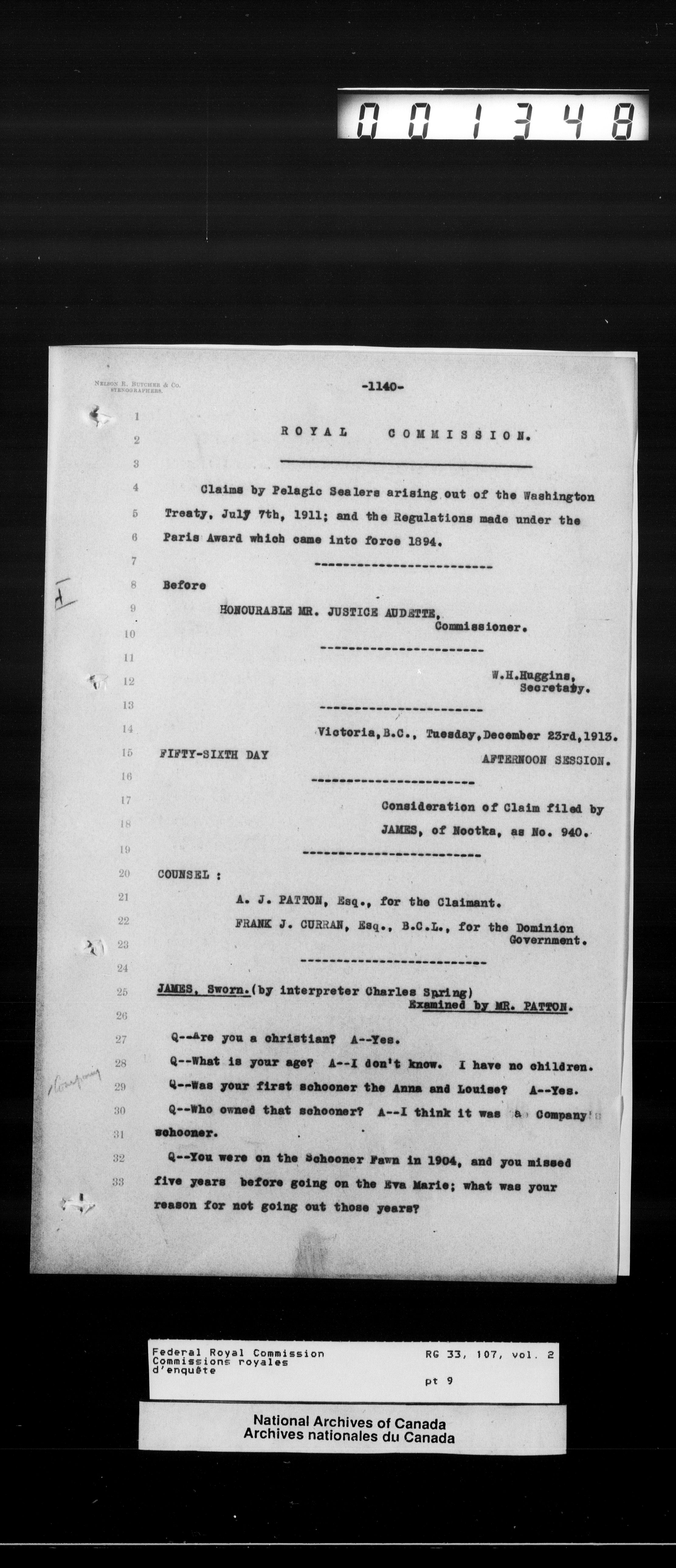 Commission to Investigate into and Report upon Claims of certain Canadian Pelagic Sealers Alleged to have been damnified by reason of the Pelagic Sealing Treaty of the 7th July, 1911 between Great Britain and the United States, Russia, and Japan, and by the Paris Award Regulations of 1893 - 12050