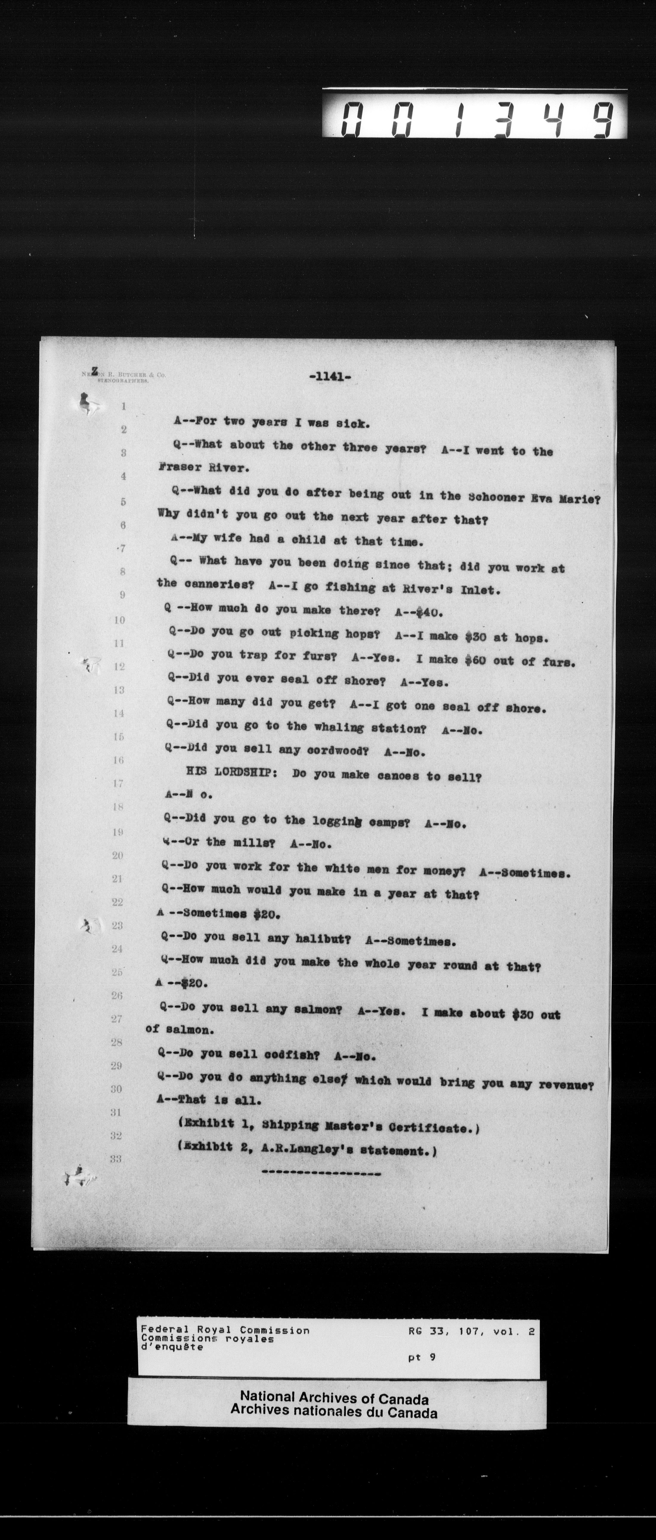 Commission to Investigate into and Report upon Claims of certain Canadian Pelagic Sealers Alleged to have been damnified by reason of the Pelagic Sealing Treaty of the 7th July, 1911 between Great Britain and the United States, Russia, and Japan, and by the Paris Award Regulations of 1893 - 12050