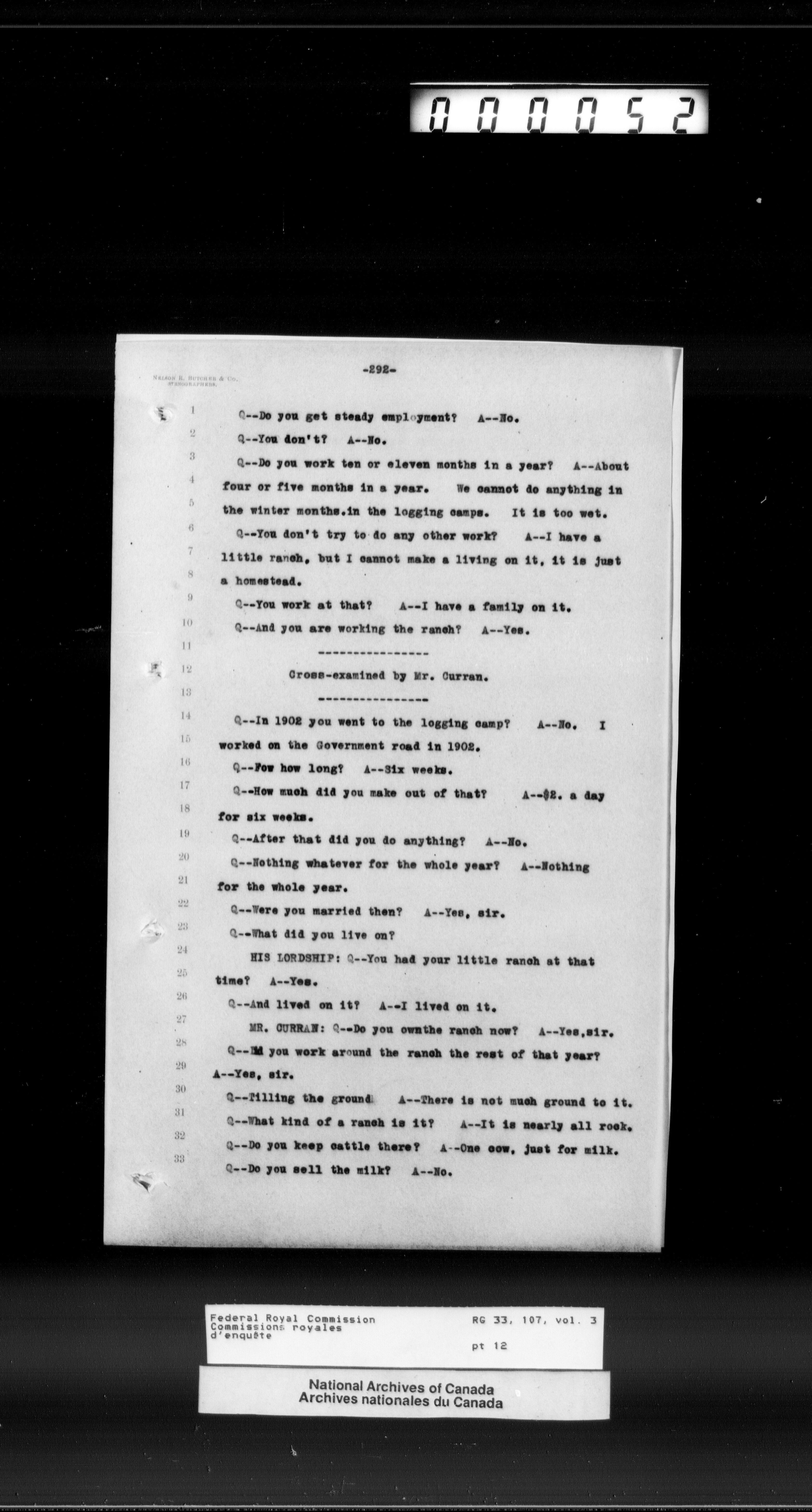 Commission to Investigate into and Report upon Claims of certain Canadian Pelagic Sealers Alleged to have been damnified by reason of the Pelagic Sealing Treaty of the 7th July, 1911 between Great Britain and the United States, Russia, and Japan, and by the Paris Award Regulations of 1893 fonds : T-12052