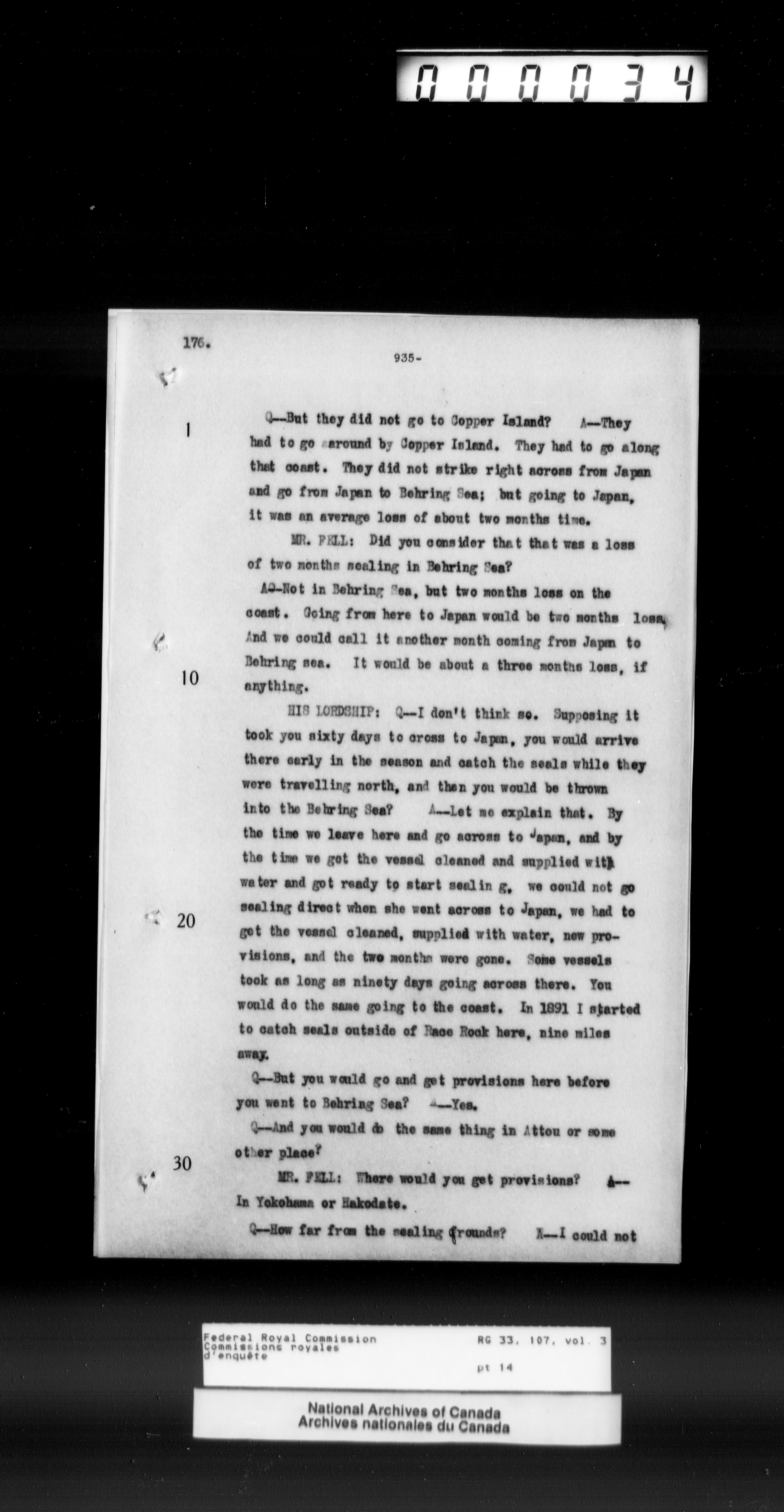 Commission to Investigate into and Report upon Claims of certain Canadian Pelagic Sealers Alleged to have been damnified by reason of the Pelagic Sealing Treaty of the 7th July, 1911 between Great Britain and the United States, Russia, and Japan, and by the Paris Award Regulations of 1893 - T-12053