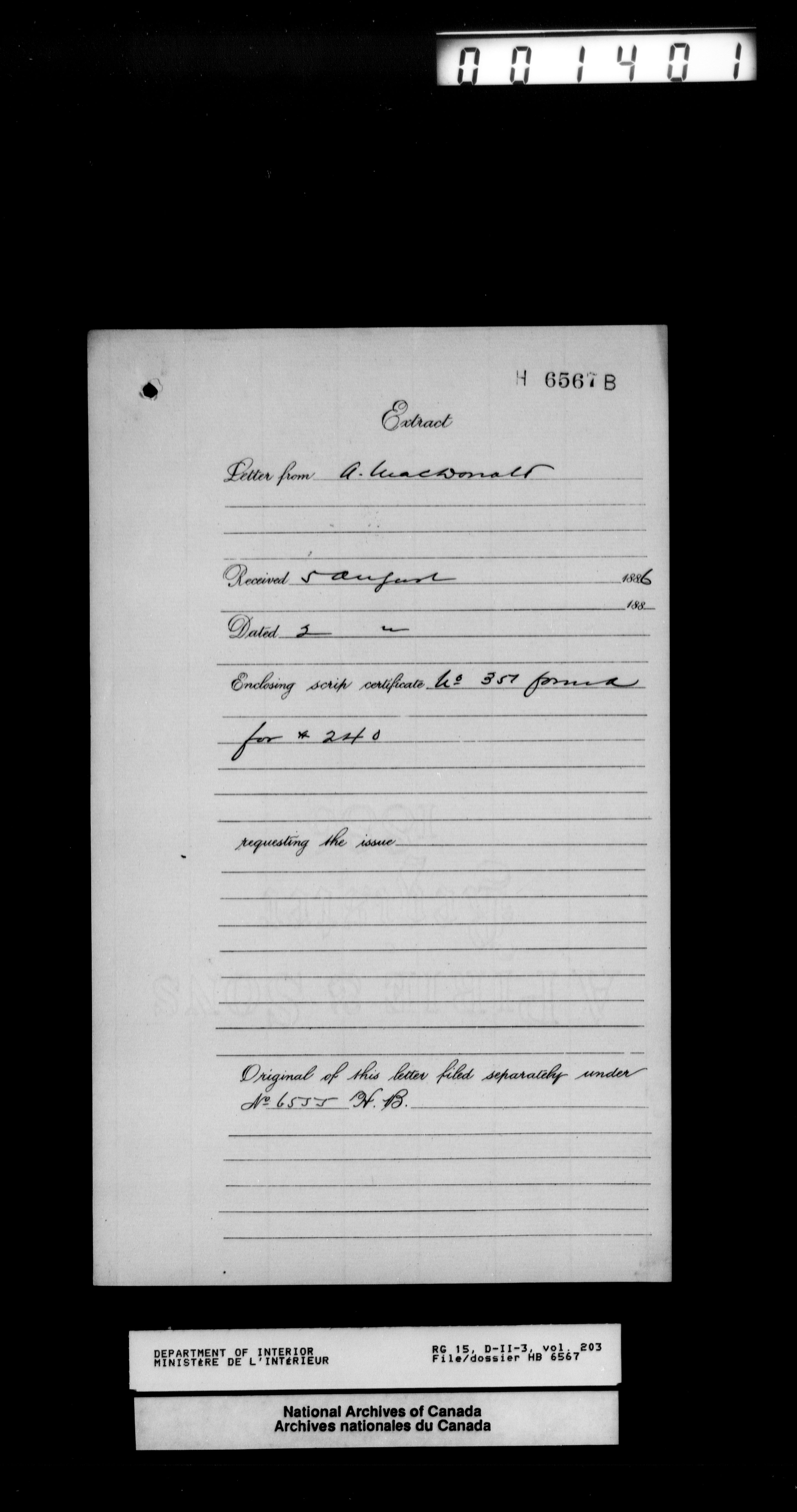 Dominion Lands Branch : Half-Breed files (1885-1887) - 12154